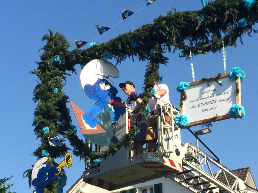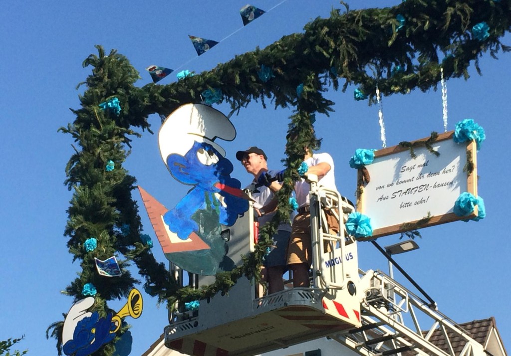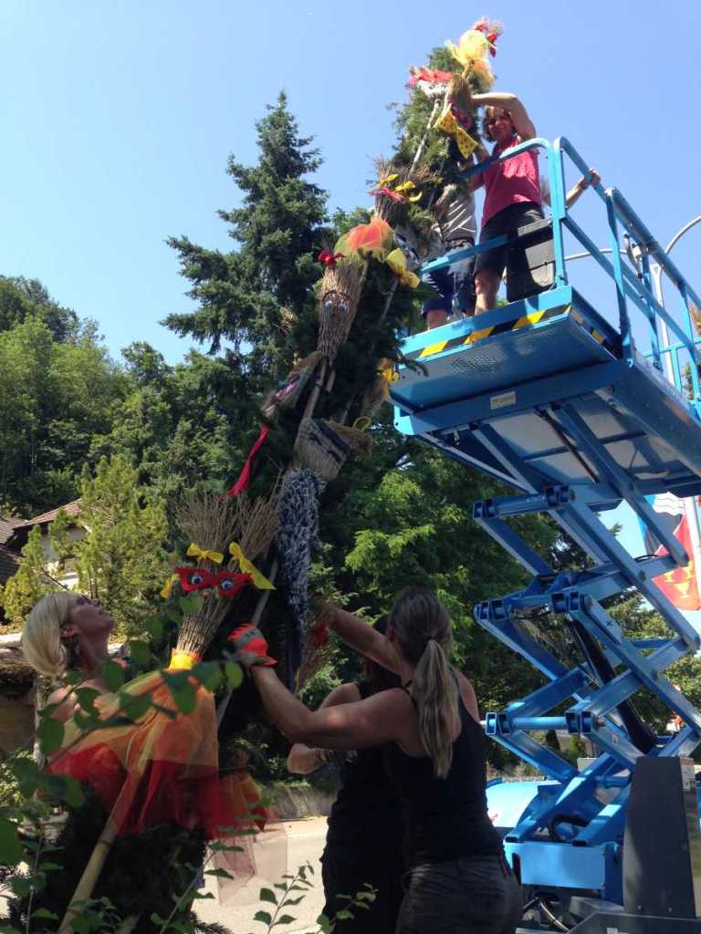Alle 10 Jugendfestbogen sind seit gestern fertig aufgestellt, das Festzelt steht bereit, Brunnen werden geschmückt und die Spielarena aufgebaut.