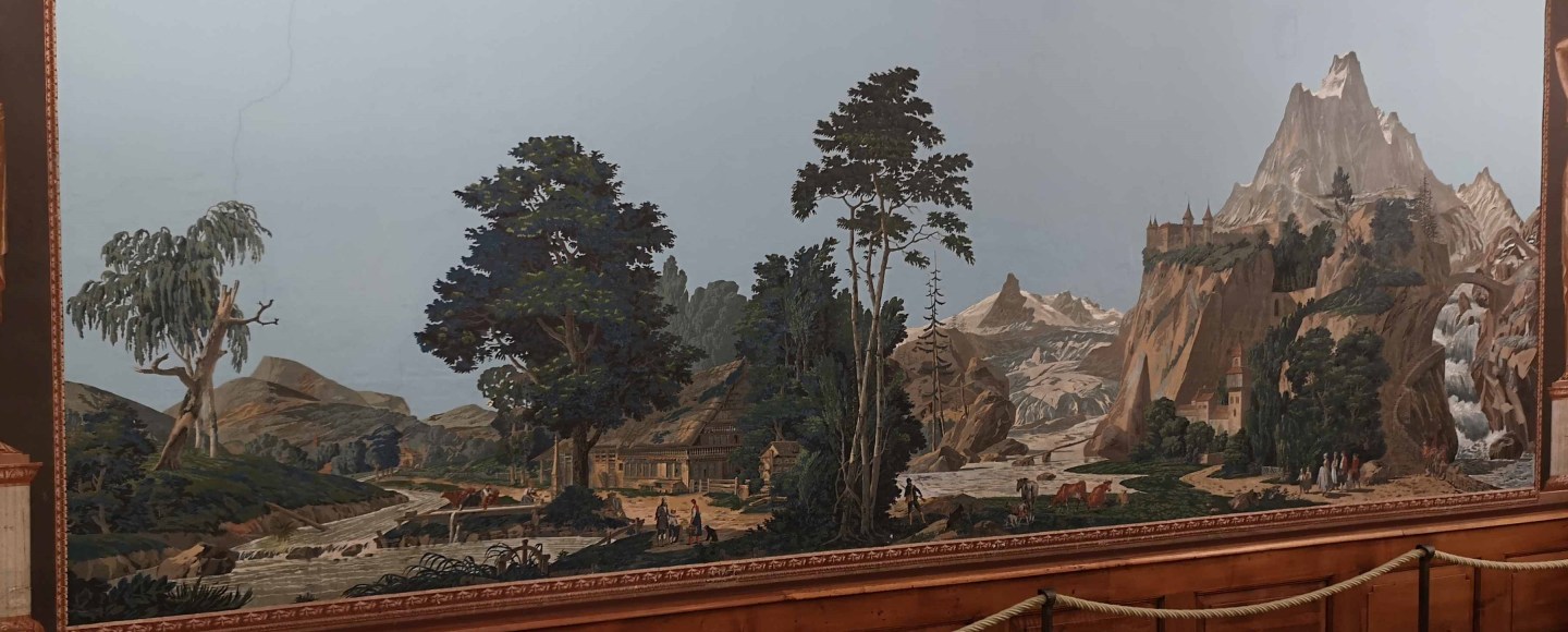 Das Treffen der beiden Räte fand im Rixheimer-Zimmer statt. Eine farbige und handbedruckte Tapete aus dem elsässischen Rixheim dominiert das Zimmer. Sie zeigt eine monumentale Landschaft mit dem Titel «Vue de Suisse» .