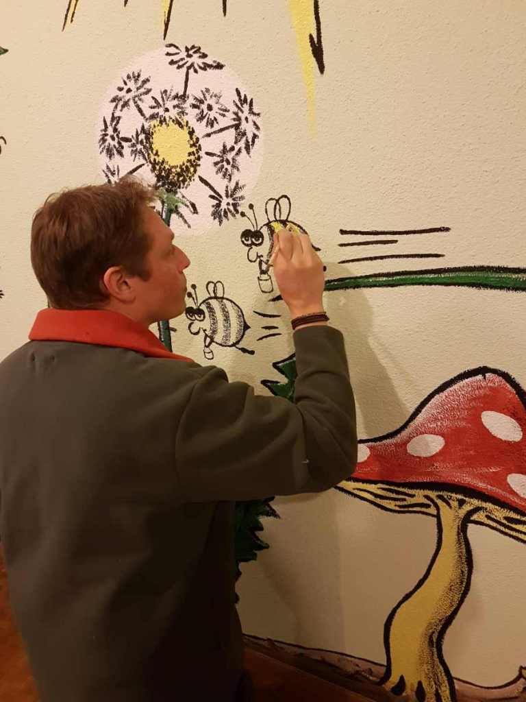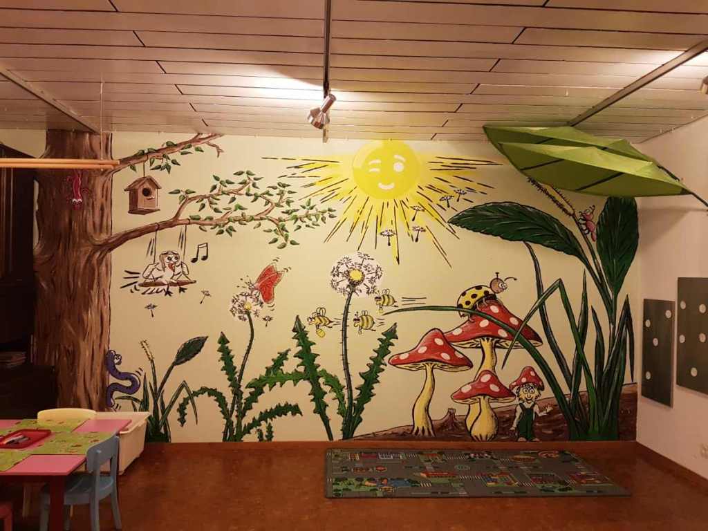 Tanja Schulthess verschönert den Raum der Spielgruppe Spatzenäscht freiwillig, aus Freude am Selbermachen und aus Dankbarkeit ihrer Vorgängerin Uschi Waser gegenüber. Diese war die erste Spielgruppenleiterin in Staufen und hat Tanja motiviert, ihre Nachfolgerin zu werden und die entsprechende Ausbildung zu machen.