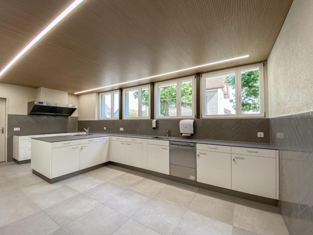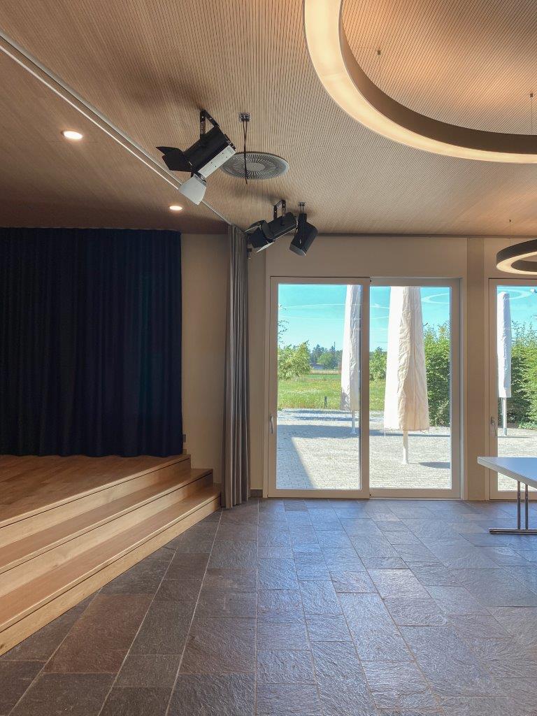 Die Renovation des Zopfhuus (in Stockwerkeigentum der Gemeinde und der reform. Kirchgemeinde) wurde erfolgreich abgeschlossen. Der Saal und die Küche haben ein völlig anderes Ambiente erhalten. Die LED-Ringleuchten sowie die hellbraune Akustikdecke lassen den Saal modern, aber auch zeitlos und wohnlich wirken. Im Boden ist eine Schlaufe (die gleiche wie in der Kirche auf dem Staufberg) für Menschen mit Hörschwierigkeiten eingebaut. Die Bühnentechnik (Licht, Audio, Leinwand) wurde erneuert und ist nun für Kulturveranstaltungen ab Steuerpult programmierbar. Eine automatische Schiebetüre erleichtert den Zugang zur Küche fürs Servierpersonal bei grossen Veranstaltungen. Die Küche samt Gerätschaften wurde vollständig erneuert und erstrahlt in einem frischen modernen Design. Dabei ermöglicht die Anordnung der Geräte ein rationelles Arbeiten. Die braunen Rössler Tassen und Teller sind mit einem weissen Geschirr ersetzt.