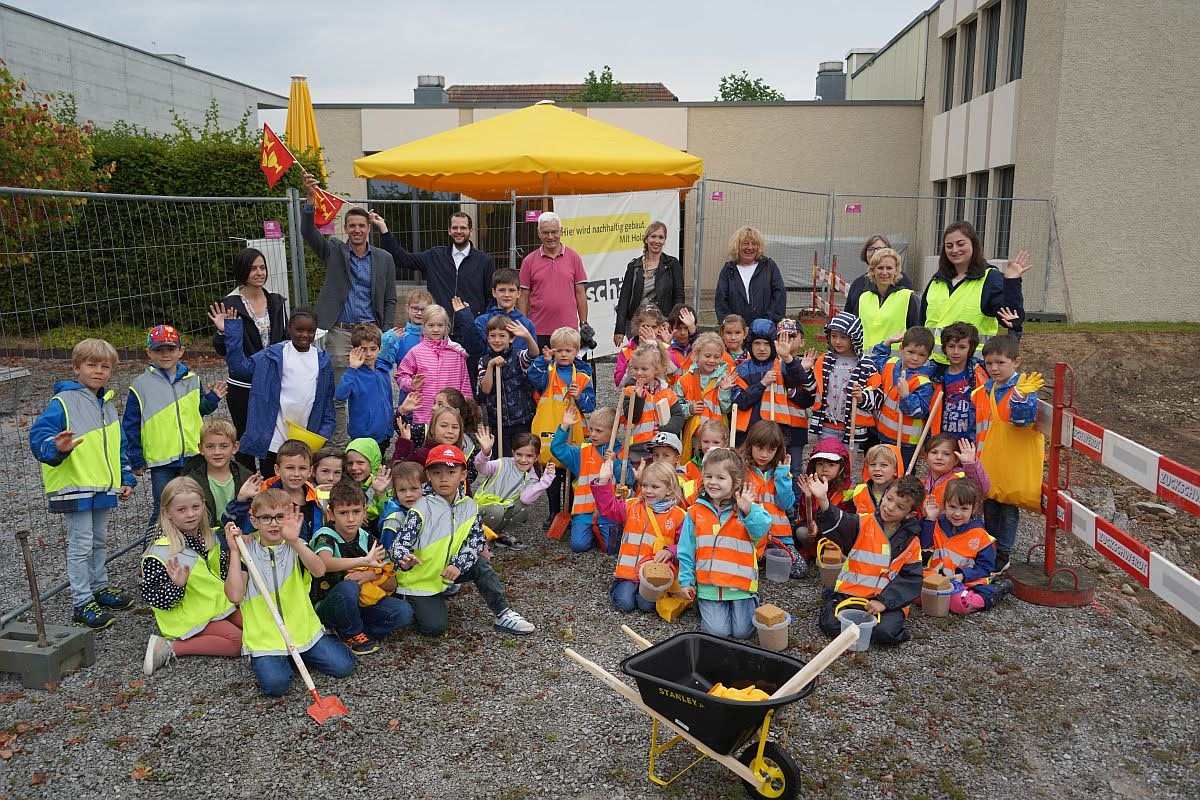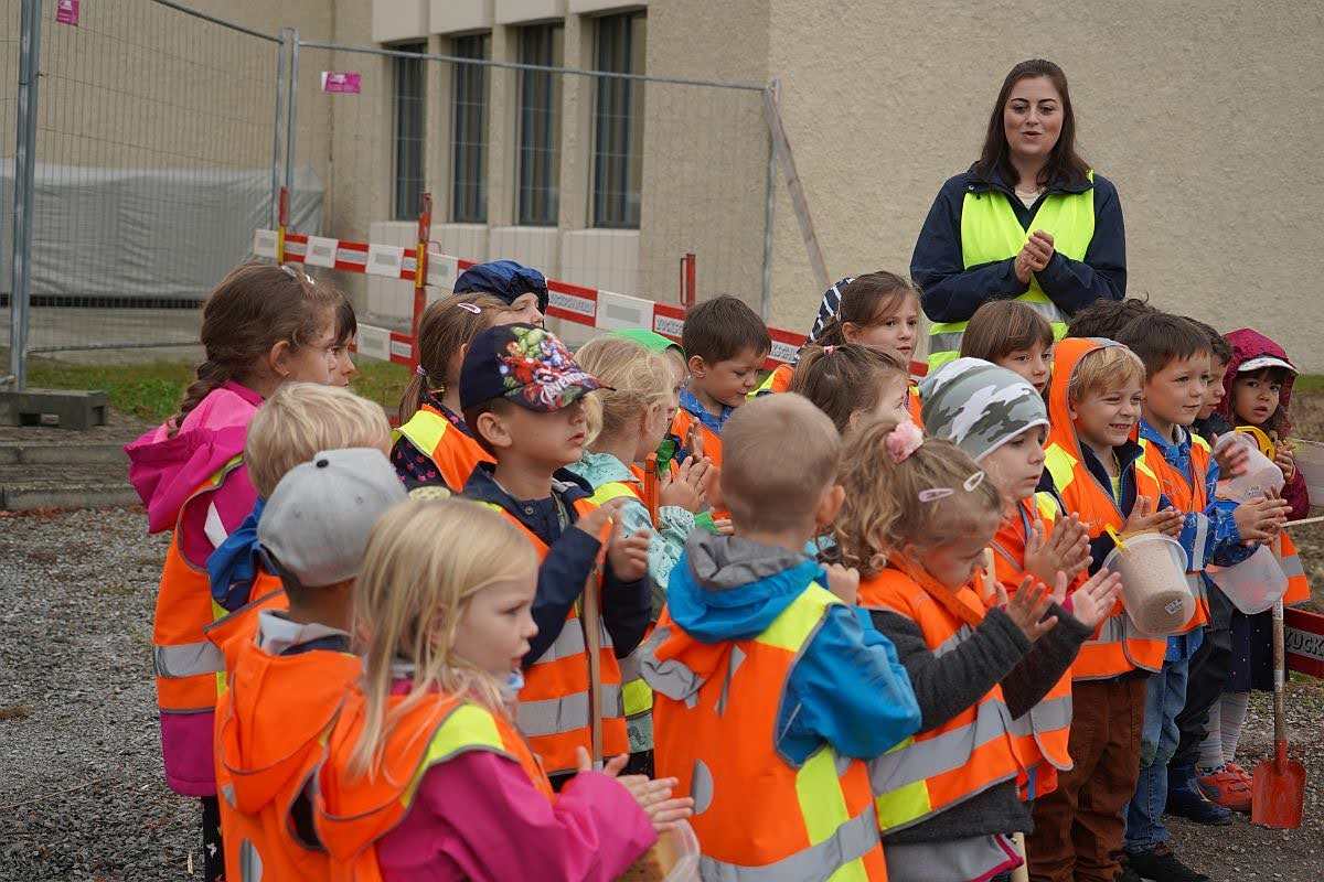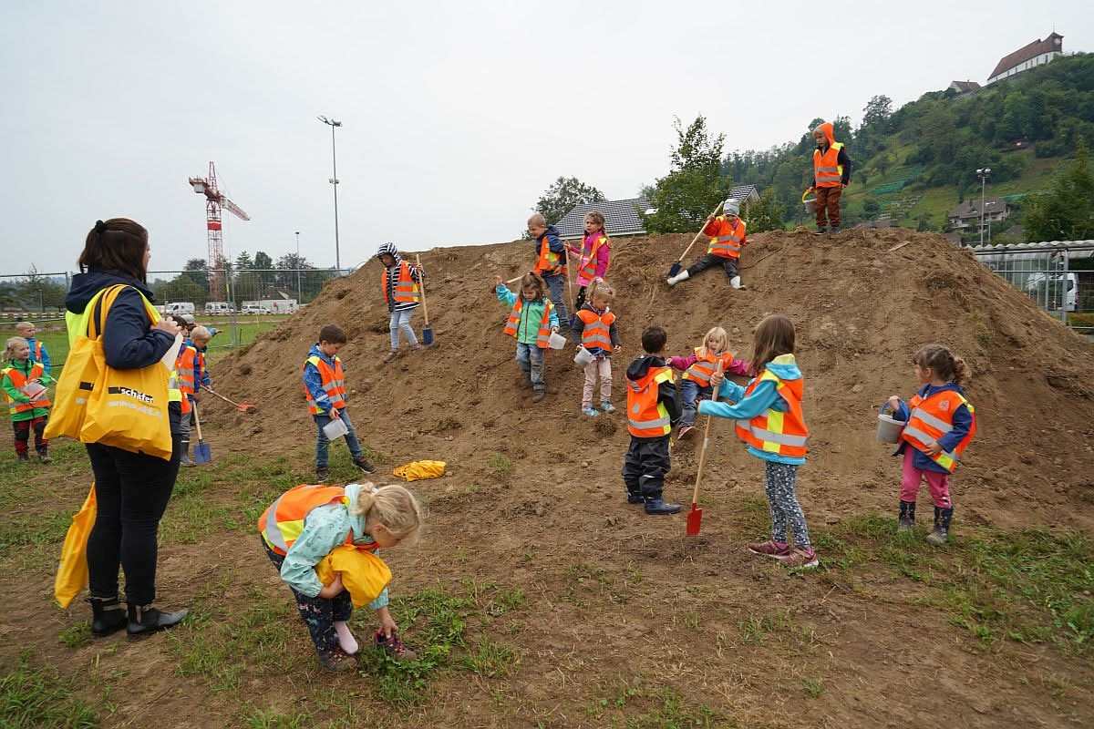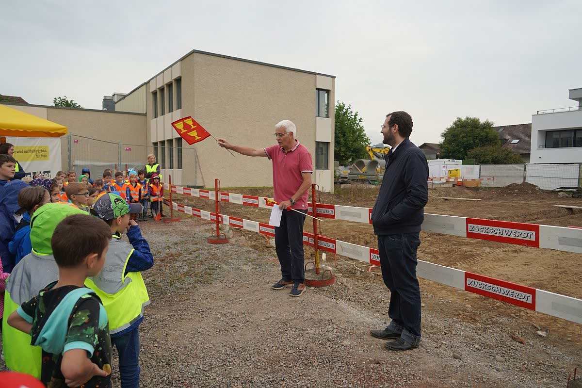 Am Mittwoch, 15. September konnten Kindergarten- und Unterstufenkinder die Baustelle des Schulhaus Zopf feierlich eröffnen. Zusammen mit Vertretern von Schulpflege, Schulleitung, Gemeinderat und Totalunternehmer feierte die Schülerschar den grossen Moment für Staufen. Bereits auf das kommende Schuljahr 2022/23 soll das Gebäude mit vier Kindergartenklassen bevölkert werden.