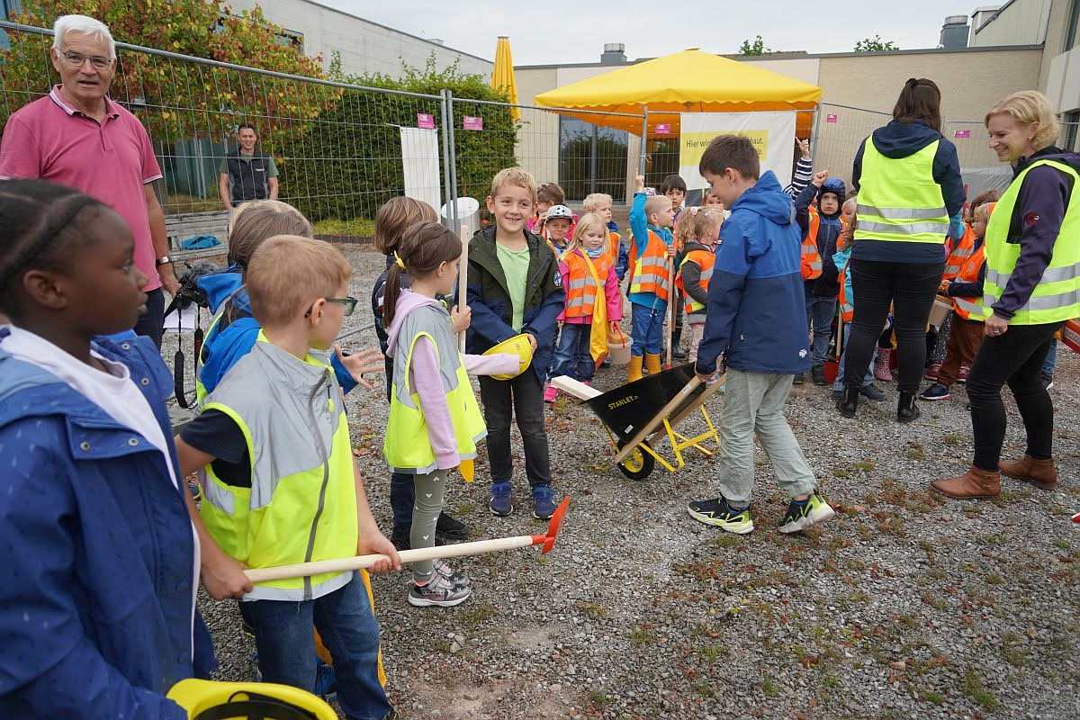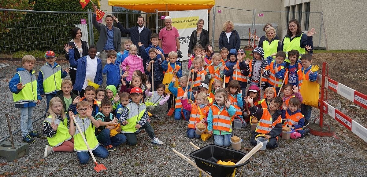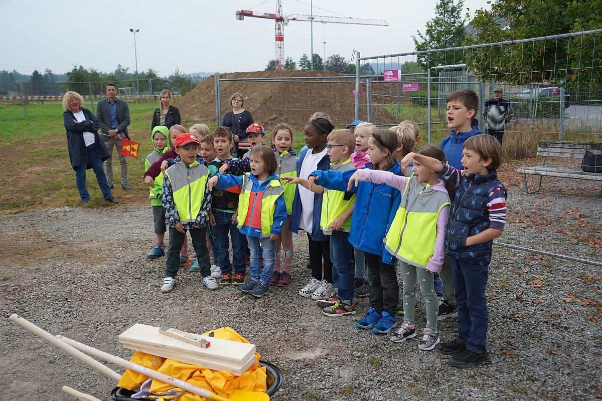 Kinder aus dem Kindergarten und der Unterstufe haben je ein tolles Lied zur Baustelleneröffnung vorgetragen.
