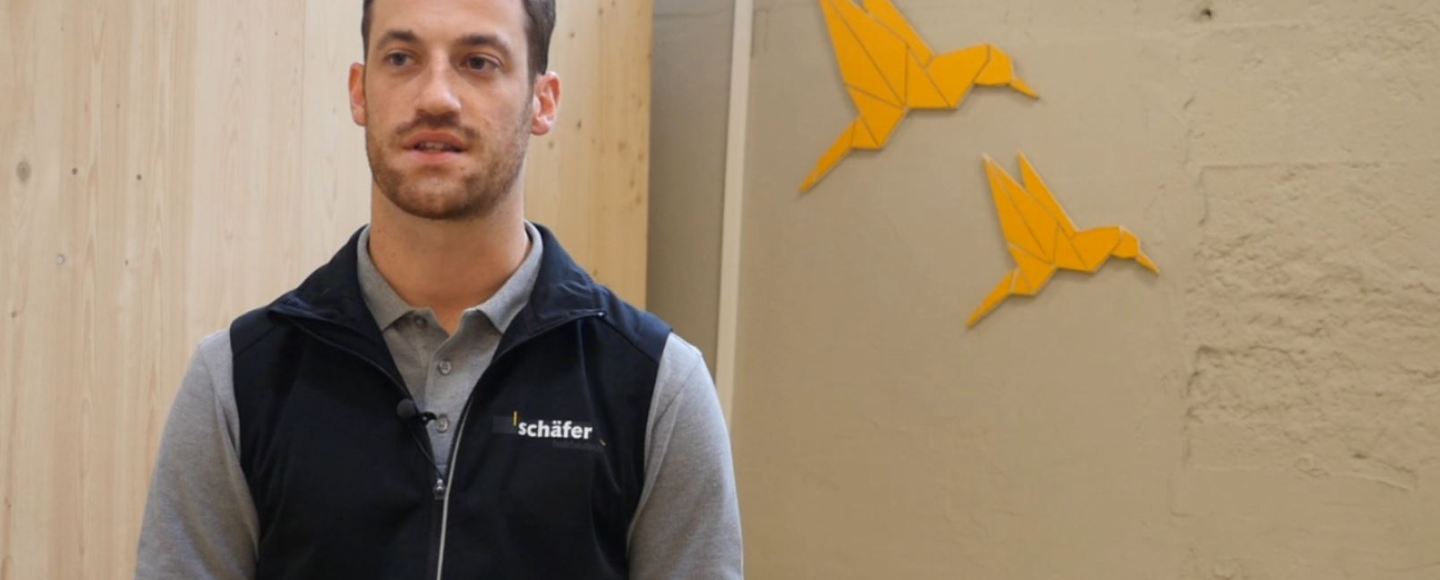 Der in Staufen wohnhafte Jeremias Frei ist Konstrukteur Holzbau bei Schäfer Holzbautechnik in Dottikon. In dieser Funktion ist er verantwortlich für die Vorproduktion des Schulhaus Zopf in den Werkstätten in Dottikon. Im Video gibt er aus Auskunft, was es braucht, damit die Wände, Zwischenboden und Dach des Schulhaus innert sechs Wochen vorproduziert werden können.
