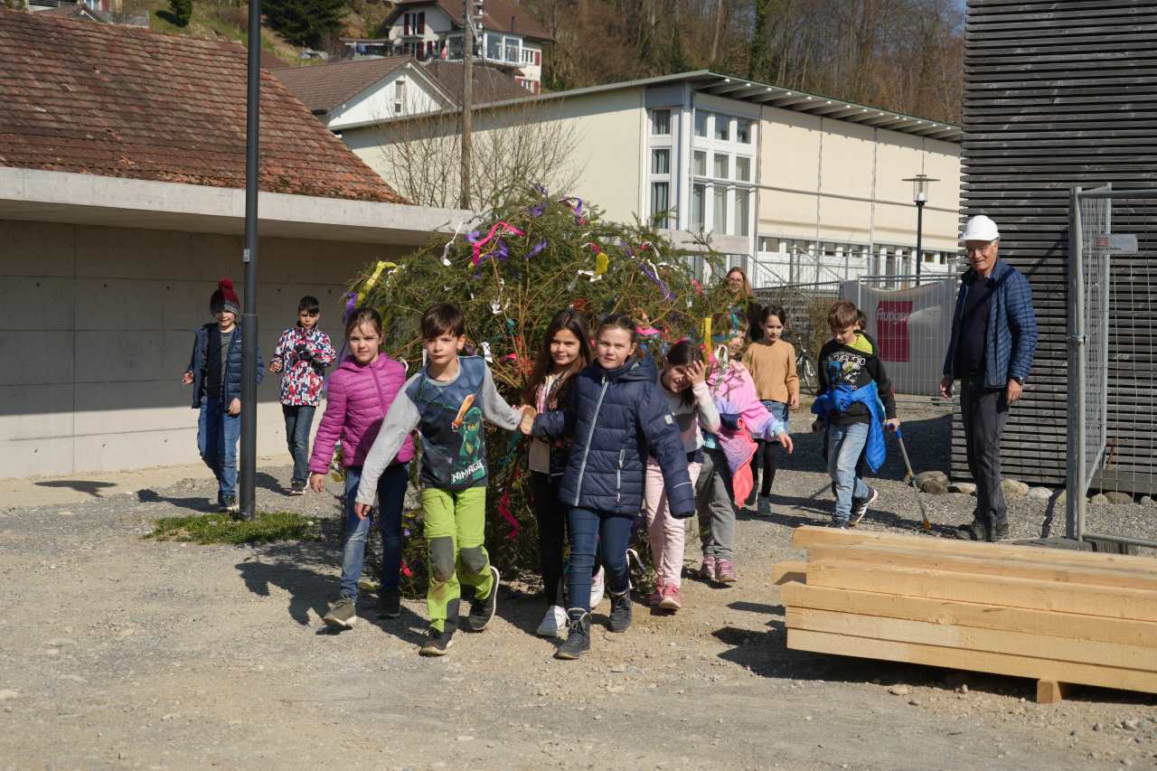 Eine Schulklasse überbrachte das Aufrichtebäumli
