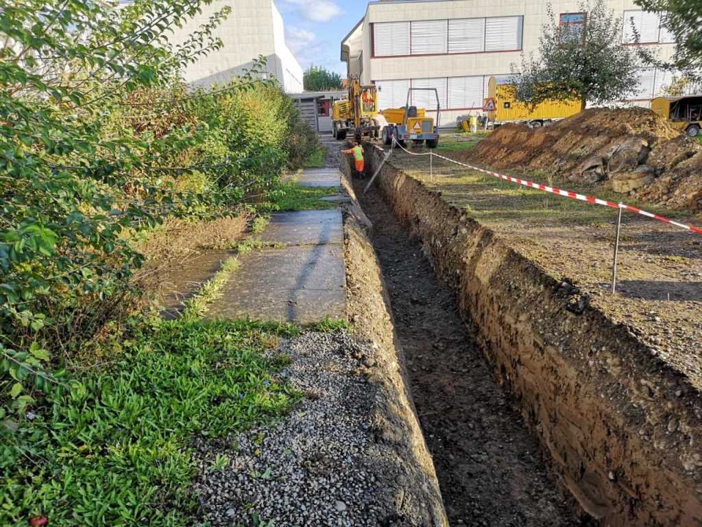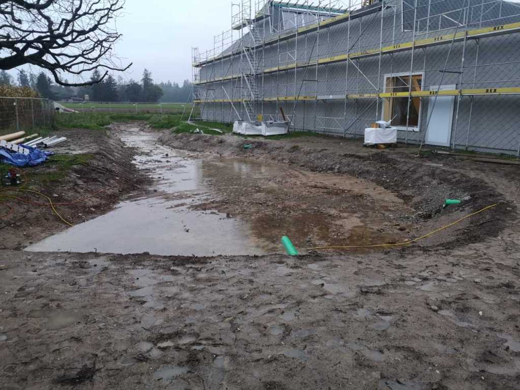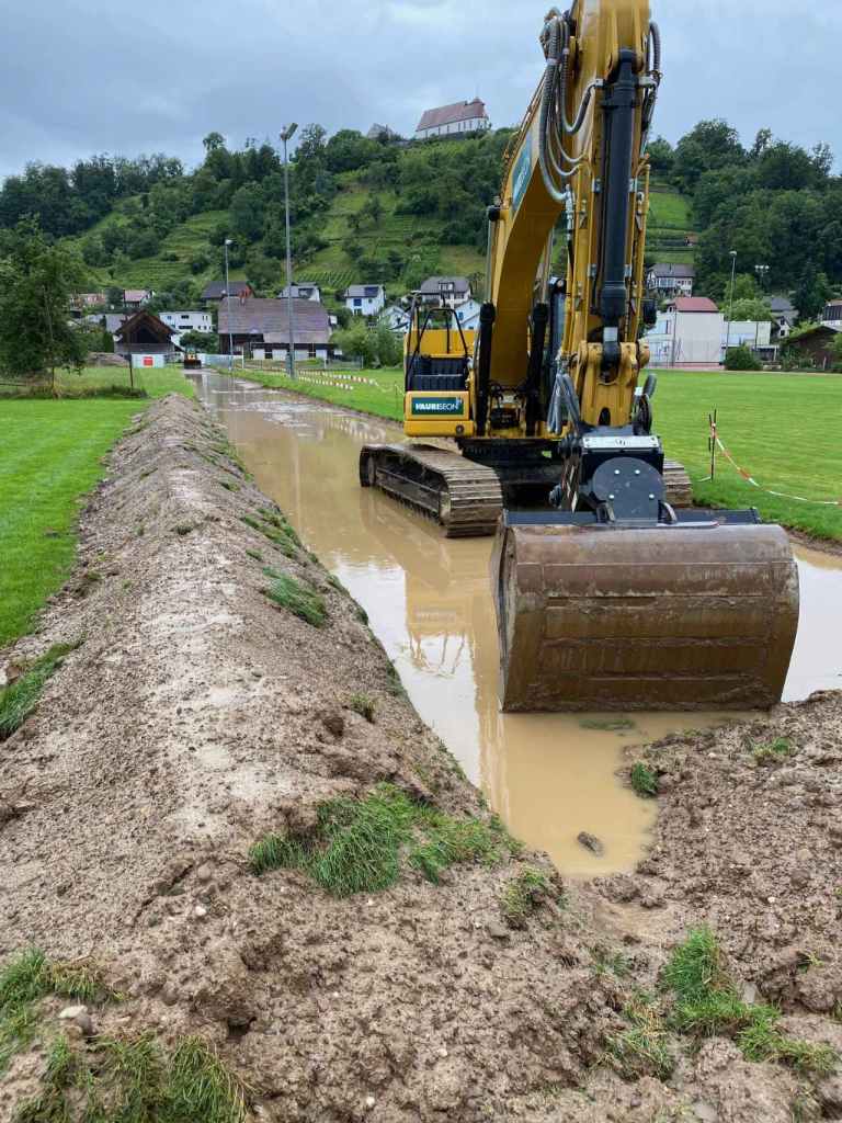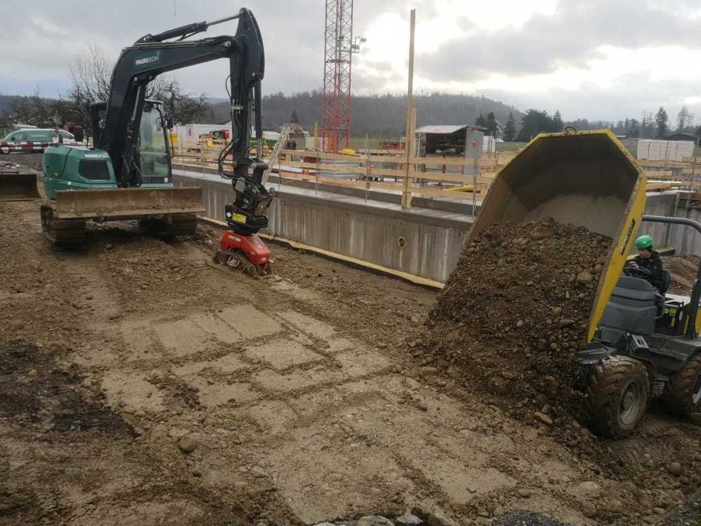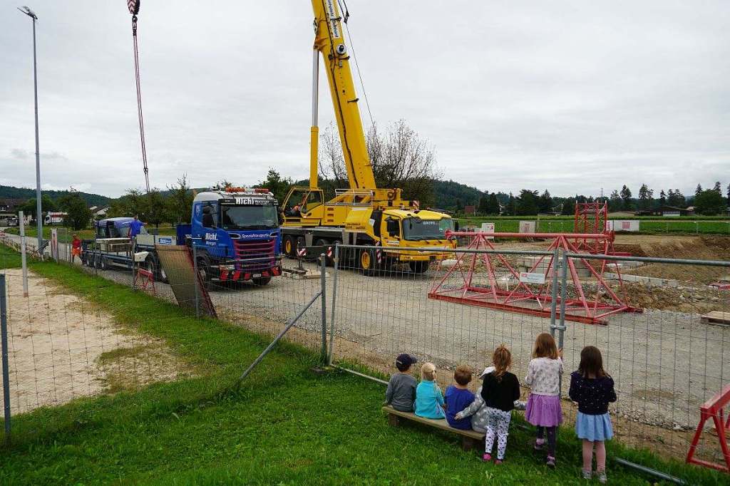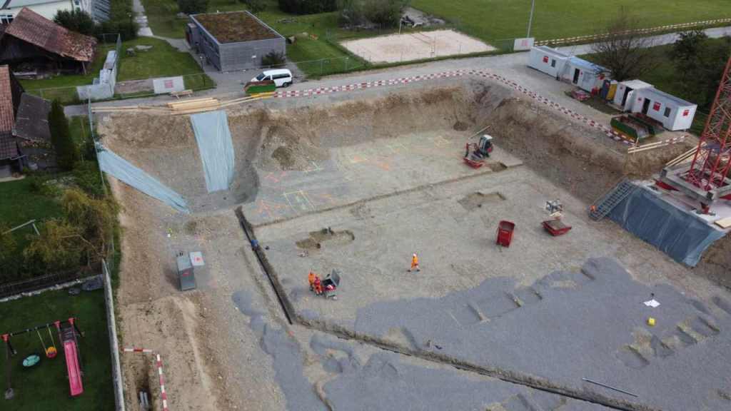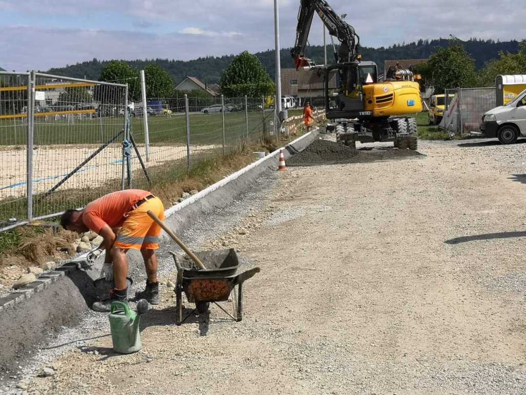 Aus dem Leben eines Baggerführers (11.08.21)Ein Kieshaufen wurde am Seenerweg für die Wiederauffüllung nach dem Bau aufgeschüttet (08.08.21)Die Bauleute von Frutiger auf dem „Feldherrenhügel“, links Bauleiterin Farida Krähenbühl (07.08.21)Das Baufeld zeichnet sich ab (Drohnenfoto 27.07.21)Baupiste (21.07.2021)Der Bau der provisorischen Baupiste zum Hermenweg gestaltet sich als nasse Angelegenheit. (Foto von Baggerführer Andreas Furrer vom 13.07.2021)Am Spatenstich am 5. Juli 2021 sind eine Klasse des Kindergartens und der Primarschule beteiligt. (Foto Mirjam Stutz)