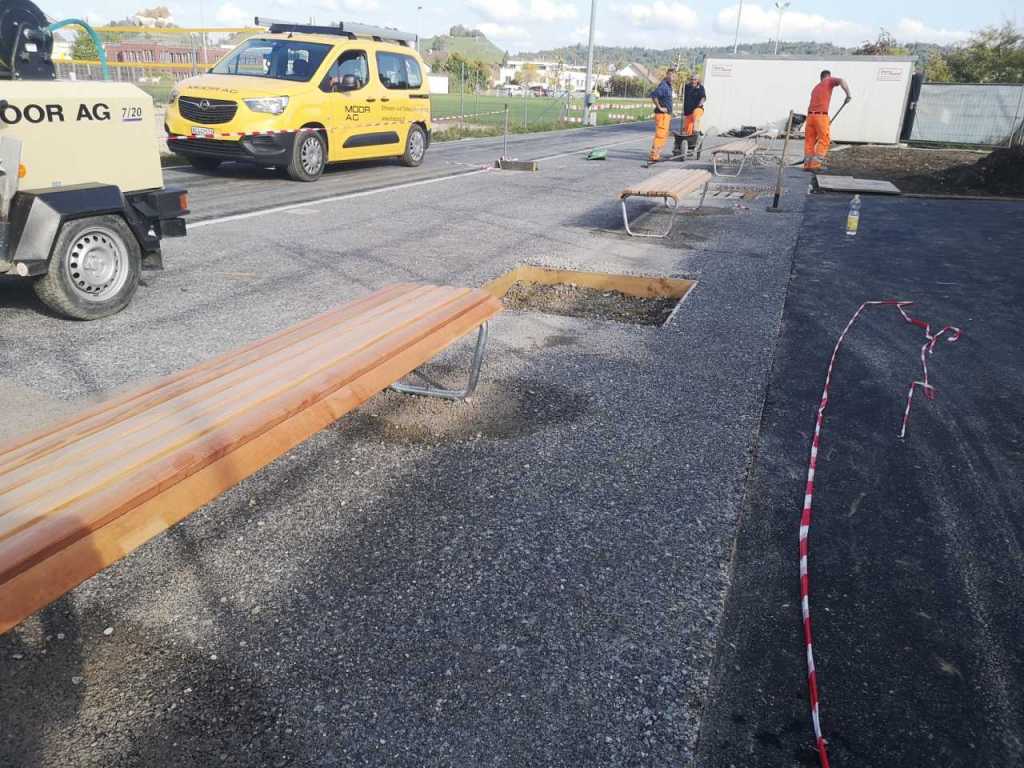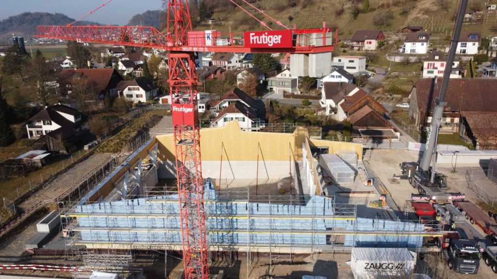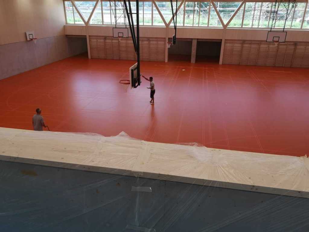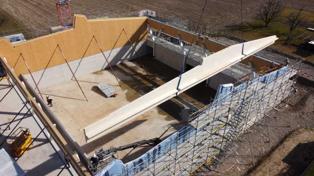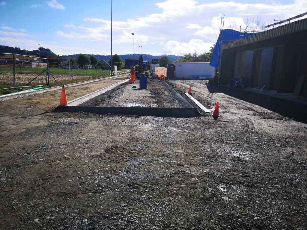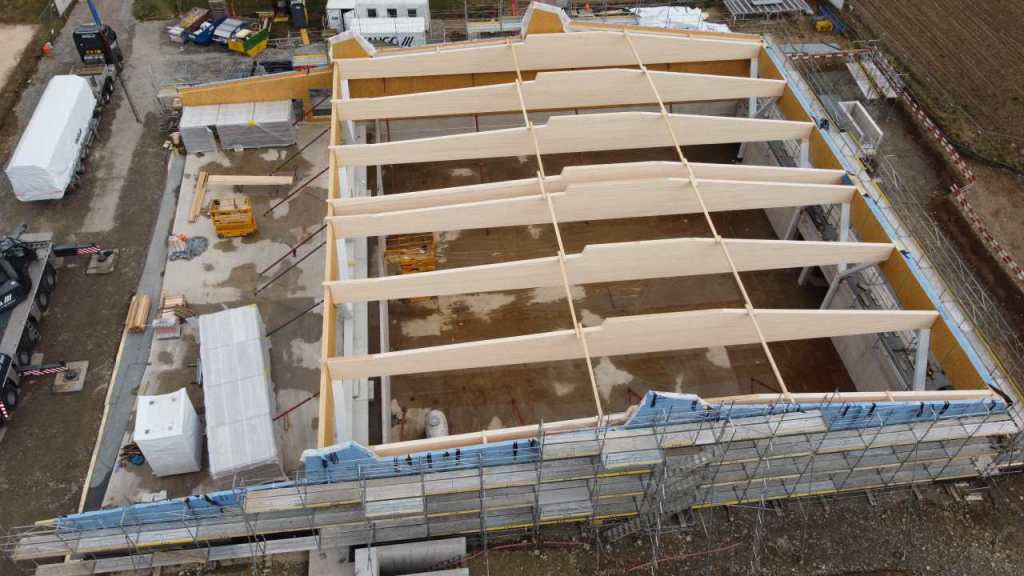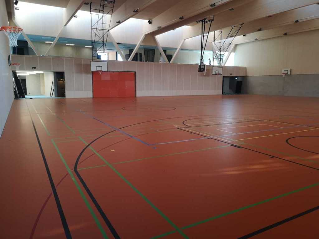 Flug durch die Sporthalle (14.10.22)Die Türe vor der Boulderwand ist montiert (07.10.22)Dachdeckerarbeiten am kleinen „Kamelbuckel“ (07.10.22)Ruhebänkli im Eingangsbereich (07.10.22)Erkennst du den Riss noch nach der Behandlung? (05.10.22)Die Bodenkosmetikerin an der Arbeit an Rissen (05.1022)Arbeiten an der Fassade der Eingangsfront (05.10.22)Durchreiche in die Teeküche (05.10.22)Das Material für den Geräteraum wurde angeliefert (03.10.22)Fuss- und Veloweg (03.10.22)Hallen aus Sicht der Geräteräume (30.09.22)Halle mit Blick auf die Tribüne und Dachkonstruktion (30.09.22)Technikraum (30.09.22)Garderobe (30.09.22)Gang zu den Garderoben mit runden Wandleuchten (30.09.22)Die Treppe von unten gesehen (30.09.22)Treppe zu den Garderoben (30.09.22)Stehtribüne (30.09.22)Foyer (30.09.22)In den letzten Tag fanden erste Vorabnahmen statt (30.09.22)Das Regenwetter der letzten Tag ist auch ein Test für die Regenwasserversickerungsanlage (29.09.22)Digitale Uhranlage, die gleichzeitig auch eine Stoppuhr ist in der Sporthalle (29.09.22)Bauleiterin Farida Krähenbühl mit einem deutschen Dachdeckergesellen in der Kluft (27.09.22)Die Hallen-Trennwand ist eingezogen (26.09.22)„Nest“ nennt sich dieser Typ Wasserabdeckung im Eingangsbereich (in Anlehnung an Herzog&De Meurons Nest-Stadion in Peking) 26.09.22Ring- und Taugeräte werden montiert (26.09.22)Dusche (26.09.22)Stand der Arbeiten beim zweiten Kamelbuckel (24.09.22)Dachfläche auf der Nordseite mit dem ersten Kamelbuckel (24.09.22)Der Bauspengler an der Arbeit bei der Fenstereinfassung (24.09.22)Blick in die Teeküche mit Durchreiche zum Foyer (24.09.22)Die Arbeiter und Maschinen der Moor AG im Einsatz auf dem Vorplatz (2309.22)Der Vorplatz wird goudroniert (23.09.22)Buebe-Toilette (2309.22)Auf der Vorderseite des Sichtschutzes in den Garderoben gibt es kleine Schränkli (23.09.22)Geräteraumeinrichtungen werden montiert (23.09.22)In den Garderoben wird der Sichtschutz montiert (22.09.22)Die Trennwand zwischen den beiden Hallen wird vor Ort genäht und montiert (22.09.22)Die Beleuchtung im Foyer mit den LED-Lichtbändern an den drei Oblichtern (22.09.22)Blick vom Duschraum zur Garderobe (20.09.22)Die Griffe der Boulderwand werden montiert (19.09.22)Im Vorfeld der Halle wird der Platz planiert (19.09.22)Die Tore zu den Geräteräumen werden montiert (19.09.22)Die WC haben nun auch Tür und Trennwände erhalten (19.09.22)WC sind montiert, wenn der Kredit reicht, gibt es noch Trennwände;-) (13.09.22)Die Bodenmarkierungen sind angebracht (12.09.22)Der PU-Boden in den Garderoben wird eingebracht (09.09.22) Foto Farida KrähenbühlDer Aussenbereich mit dem Veloweg nimmt Formen an (09.09.22)Die Teeküche im Foyer wird montiert (09.09.22)Auf dem Hallenboden werden die Markierungen vorbereitet (09.09.22)die Beleuchtung im Foyer ist montiert (07.09.22)eine weitere Schicht des Hallenbodens ist aufgetragen (07.09.22)Aussenansicht Stand 02.09.22eine weitere Schicht wird auf dem Hallenboden aufgetragen (02.09.22)Drei Oblichter beleuchten den Treppenabgang (02.09.22)Die Firma Moor ist am Vorbereiten des Zufahrtsweges für Velos und Fussgänger (01.09.22)Arbeiten an der Fassade (30.08.22)Die Brüstung der Stehtribüne ist mit einem dicken Brett abgedeckt (26.08.22)Die Sprossenwände werden montiert (26.08.22)Der Hallenboden wird gelegt (24.08.22)Die Eingangsfront wird sichtbar (23.08.22)Sicht von der Tribüne in die Halle. Stand 19.8.22Sicht von der Halle Richtung Tribüne. Stand 19.8.22Die Hebebühnen wurden aus dieser Öffnung im Geräteraum gehoben, dafür wurden bereits vier Barren hineingehievt. Die Öffnung wird wieder verschlossen. (19.08.22)Die Decke im Foyer wird durch die Zimmerleute montiert (15.08.22)Arbeiten an der Decke im Tribünenbereich (15.8.22)Auf dem Dach sind die ersten Eternitschindeln montiert (10.08.22)Die Eingangsfront und die Dachuntersicht ist bald fertig (10.08.22)Die Holzabdeckungen werden zum zweiten Mal lasiert (08.08.22)Hier werden die Griffe der Boulderwand montiert (08.08.22)Basketballanlage ist montiert (25.07.22)Die Ringanlage an der Hallendecke wird montiert (18.07.22)Blick von der Tribüne in die Halle – Fenster und Licht sind montiert (30.06.22)Dach und Fassade wären bereit für die Eternitschindeln (29.06.22)Im Foyer wird die Untersicht eingebaut (24.06.22)Im Eingangsbereich der Sporthalle (21.06.22)Wie ein Bilderrahmen wirkt das neue Fenstere gegen den Staufberg (15.06.22)Ein Türflügel wird montiert (15.06.22)Die ersten Fenster auf der Südseite sind montiert (14.06.22)Heizschlangen auf dem Hallenboden (08.06.22)Lukas Ziltener und sein Team montieren die PV-Anlage (03.06.22)Die Innenverkleidungen in der Halle sind fast fertig (30.05.22)Vorbereitungsarbeiten für die Montage der PV-Anlage (17.05.22)Die Hallendecke wird montiert (17.05.22)Dachlattung (17.05.22)Blick in die Halle Stand 12.05.22Blick von der Südseite durch die Halle auf die Tribüne (02.05.22)Aussensicht Stand 21.04.2022Die erste Dreischicht-Holzplatte der Innenwand ist montiert (21.04.22)Haustechnik: Montage Lüftung (21.04.22)Haustechnik: Wärmeverteilung (19.04.22)Haustechnik: Duschanlage (19.04.22)Arbeiten auf dem Dach (06.04.22)Der Blick von der Tribüne lässt die künftige Atmosphäre der Halle erahnen (30.03.22)Die Eingangspartie mit Vordach ist erkennbar (30.03.22)Das Dach ist eingedeckt und das Aufrichtebäumli steht (24.03.22)Das Dach wird eingedeckt (22.03.22)Alle acht Binder sind montiert (16.03.22)Die ersten fünf Binder überbrücken die Halle (15.03.22)Der erste Binder kommt geflogen… (14.03.22)Der Moment, wo der Frutiger-Kran die Kirche auf den Staufberg absetzt (13.03.22) Foto Thomas VollenweiderAm Montag, 14. März werden die Binder mit dem Pneukran auf die Y-Stützen montiert (11.03.22)Der Hilfskran steht bereit für die Montage der 30m langen Binder (11.03.22)Die Seitenwände sind aufgerichtet (11.03.22)Blick durch ein Fenster der Ostwand auf die Hostet (09.03.22)Die Y-Stützen für die grossen Binder werden montiert