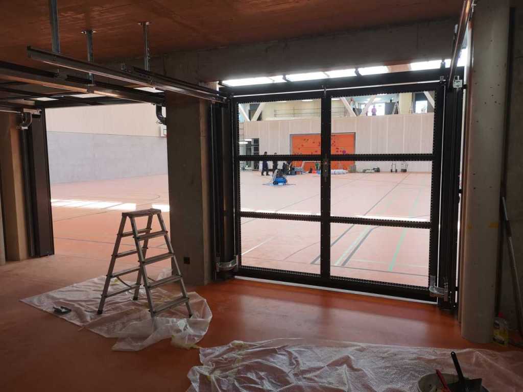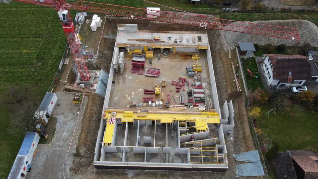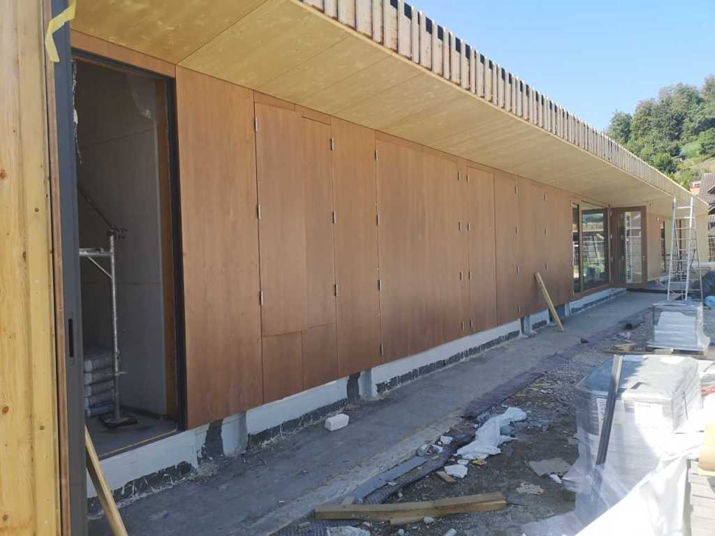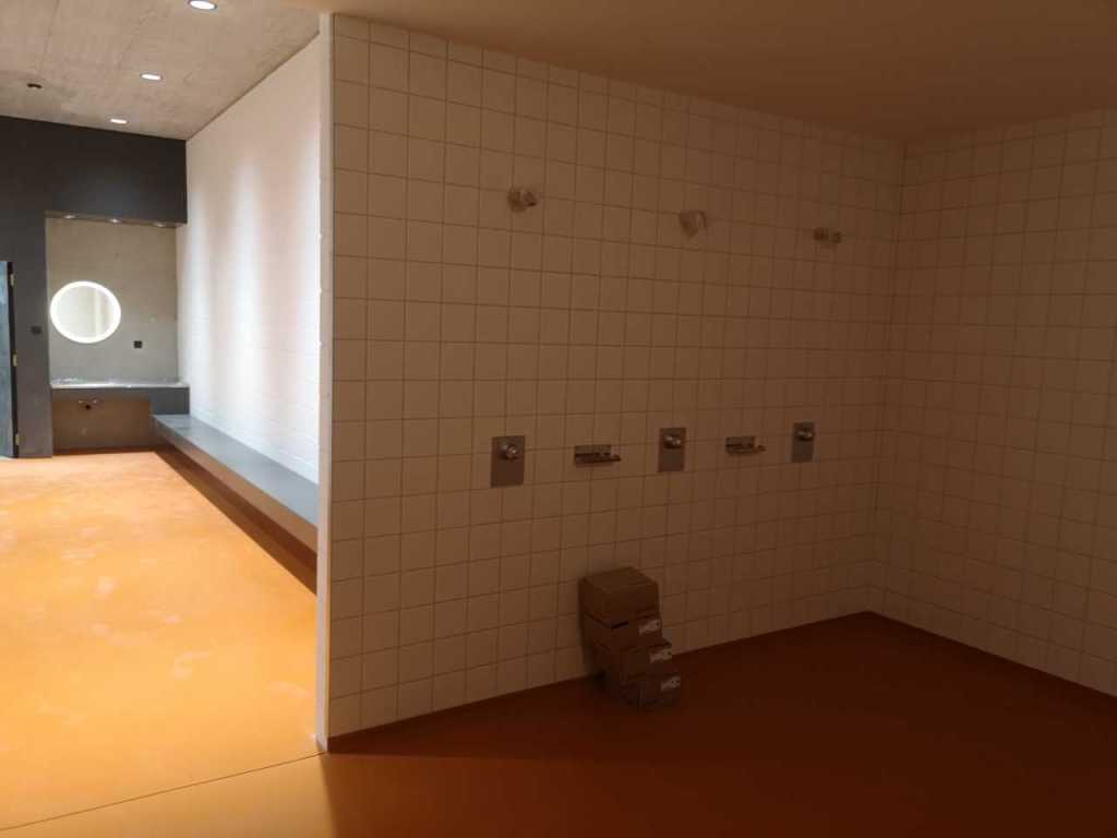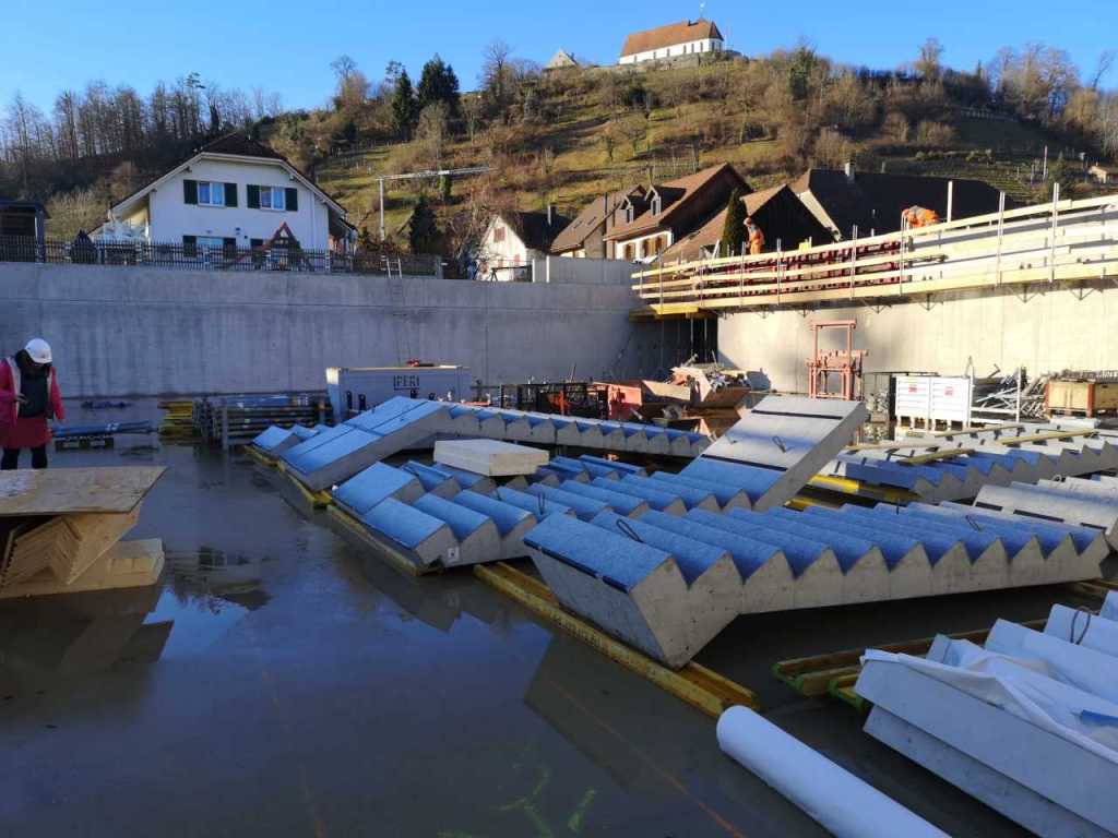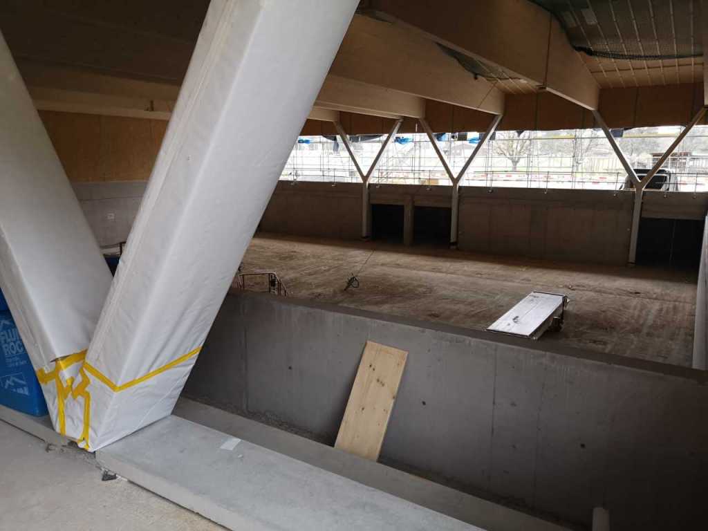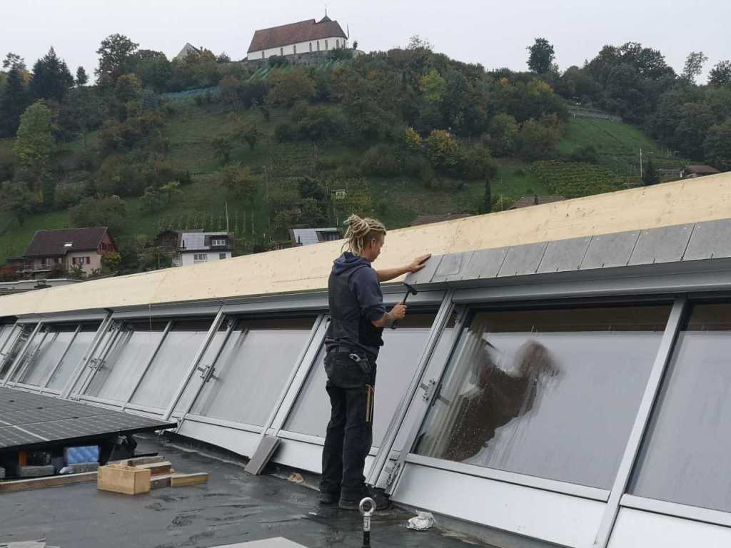 Flug durch die Sporthalle (14.10.22)Die Türe vor der Boulderwand ist montiert (07.10.22)Dachdeckerarbeiten am kleinen „Kamelbuckel“ (07.10.22)Ruhebänkli im Eingangsbereich (07.10.22)Erkennst du den Riss noch nach der Behandlung? (05.10.22)Die Bodenkosmetikerin an der Arbeit an Rissen (05.1022)Arbeiten an der Fassade der Eingangsfront (05.10.22)Durchreiche in die Teeküche (05.10.22)Das Material für den Geräteraum wurde angeliefert (03.10.22)Fuss- und Veloweg (03.10.22)Hallen aus Sicht der Geräteräume (30.09.22)Halle mit Blick auf die Tribüne und Dachkonstruktion (30.09.22)Technikraum (30.09.22)Garderobe (30.09.22)Gang zu den Garderoben mit runden Wandleuchten (30.09.22)Die Treppe von unten gesehen (30.09.22)Treppe zu den Garderoben (30.09.22)Stehtribüne (30.09.22)Foyer (30.09.22)In den letzten Tag fanden erste Vorabnahmen statt (30.09.22)Das Regenwetter der letzten Tag ist auch ein Test für die Regenwasserversickerungsanlage (29.09.22)Digitale Uhranlage, die gleichzeitig auch eine Stoppuhr ist in der Sporthalle (29.09.22)Bauleiterin Farida Krähenbühl mit einem deutschen Dachdeckergesellen in der Kluft (27.09.22)Die Hallen-Trennwand ist eingezogen (26.09.22)„Nest“ nennt sich dieser Typ Wasserabdeckung im Eingangsbereich (in Anlehnung an Herzog&De Meurons Nest-Stadion in Peking) 26.09.22Ring- und Taugeräte werden montiert (26.09.22)Dusche (26.09.22)Stand der Arbeiten beim zweiten Kamelbuckel (24.09.22)Dachfläche auf der Nordseite mit dem ersten Kamelbuckel (24.09.22)Der Bauspengler an der Arbeit bei der Fenstereinfassung (24.09.22)Blick in die Teeküche mit Durchreiche zum Foyer (24.09.22)Die Arbeiter und Maschinen der Moor AG im Einsatz auf dem Vorplatz (2309.22)Der Vorplatz wird goudroniert (23.09.22)Buebe-Toilette (2309.22)Auf der Vorderseite des Sichtschutzes in den Garderoben gibt es kleine Schränkli (23.09.22)Geräteraumeinrichtungen werden montiert (23.09.22)In den Garderoben wird der Sichtschutz montiert (22.09.22)Die Trennwand zwischen den beiden Hallen wird vor Ort genäht und montiert (22.09.22)Die Beleuchtung im Foyer mit den LED-Lichtbändern an den drei Oblichtern (22.09.22)Blick vom Duschraum zur Garderobe (20.09.22)Die Griffe der Boulderwand werden montiert (19.09.22)Im Vorfeld der Halle wird der Platz planiert (19.09.22)Die Tore zu den Geräteräumen werden montiert (19.09.22)Die WC haben nun auch Tür und Trennwände erhalten (19.09.22)WC sind montiert, wenn der Kredit reicht, gibt es noch Trennwände;-) (13.09.22)Die Bodenmarkierungen sind angebracht (12.09.22)Der PU-Boden in den Garderoben wird eingebracht (09.09.22) Foto Farida KrähenbühlDer Aussenbereich mit dem Veloweg nimmt Formen an (09.09.22)Die Teeküche im Foyer wird montiert (09.09.22)Auf dem Hallenboden werden die Markierungen vorbereitet (09.09.22)die Beleuchtung im Foyer ist montiert (07.09.22)eine weitere Schicht des Hallenbodens ist aufgetragen (07.09.22)Aussenansicht Stand 02.09.22eine weitere Schicht wird auf dem Hallenboden aufgetragen (02.09.22)Drei Oblichter beleuchten den Treppenabgang (02.09.22)Die Firma Moor ist am Vorbereiten des Zufahrtsweges für Velos und Fussgänger (01.09.22)Arbeiten an der Fassade (30.08.22)Die Brüstung der Stehtribüne ist mit einem dicken Brett abgedeckt (26.08.22)Die Sprossenwände werden montiert (26.08.22)Der Hallenboden wird gelegt (24.08.22)Die Eingangsfront wird sichtbar (23.08.22)Sicht von der Tribüne in die Halle. Stand 19.8.22Sicht von der Halle Richtung Tribüne. Stand 19.8.22Die Hebebühnen wurden aus dieser Öffnung im Geräteraum gehoben, dafür wurden bereits vier Barren hineingehievt. Die Öffnung wird wieder verschlossen. (19.08.22)Die Decke im Foyer wird durch die Zimmerleute montiert (15.08.22)Arbeiten an der Decke im Tribünenbereich (15.8.22)Auf dem Dach sind die ersten Eternitschindeln montiert (10.08.22)Die Eingangsfront und die Dachuntersicht ist bald fertig (10.08.22)Die Holzabdeckungen werden zum zweiten Mal lasiert (08.08.22)Hier werden die Griffe der Boulderwand montiert (08.08.22)Basketballanlage ist montiert (25.07.22)Die Ringanlage an der Hallendecke wird montiert (18.07.22)Blick von der Tribüne in die Halle – Fenster und Licht sind montiert (30.06.22)Dach und Fassade wären bereit für die Eternitschindeln (29.06.22)Im Foyer wird die Untersicht eingebaut (24.06.22)Im Eingangsbereich der Sporthalle (21.06.22)Wie ein Bilderrahmen wirkt das neue Fenstere gegen den Staufberg (15.06.22)Ein Türflügel wird montiert (15.06.22)Die ersten Fenster auf der Südseite sind montiert (14.06.22)Heizschlangen auf dem Hallenboden (08.06.22)Lukas Ziltener und sein Team montieren die PV-Anlage (03.06.22)Die Innenverkleidungen in der Halle sind fast fertig (30.05.22)Vorbereitungsarbeiten für die Montage der PV-Anlage (17.05.22)Die Hallendecke wird montiert (17.05.22)Dachlattung (17.05.22)Blick in die Halle Stand 12.05.22Blick von der Südseite durch die Halle auf die Tribüne (02.05.22)Aussensicht Stand 21.04.2022Die erste Dreischicht-Holzplatte der Innenwand ist montiert (21.04.22)Haustechnik: Montage Lüftung (21.04.22)Haustechnik: Wärmeverteilung (19.04.22)Haustechnik: Duschanlage (19.04.22)Arbeiten auf dem Dach (06.04.22)Der Blick von der Tribüne lässt die künftige Atmosphäre der Halle erahnen (30.03.22)Die Eingangspartie mit Vordach ist erkennbar (30.03.22)Das Dach ist eingedeckt und das Aufrichtebäumli steht (24.03.22)Das Dach wird eingedeckt (22.03.22)Alle acht Binder sind montiert (16.03.22)Die ersten fünf Binder überbrücken die Halle (15.03.22)Der erste Binder kommt geflogen… (14.03.22)Der Moment, wo der Frutiger-Kran die Kirche auf den Staufberg absetzt (13.03.22) Foto Thomas VollenweiderAm Montag, 14. März werden die Binder mit dem Pneukran auf die Y-Stützen montiert (11.03.22)Der Hilfskran steht bereit für die Montage der 30m langen Binder (11.03.22)Die Seitenwände sind aufgerichtet (11.03.22)Blick durch ein Fenster der Ostwand auf die Hostet (09.03.22)Die Y-Stützen für die grossen Binder werden montiert