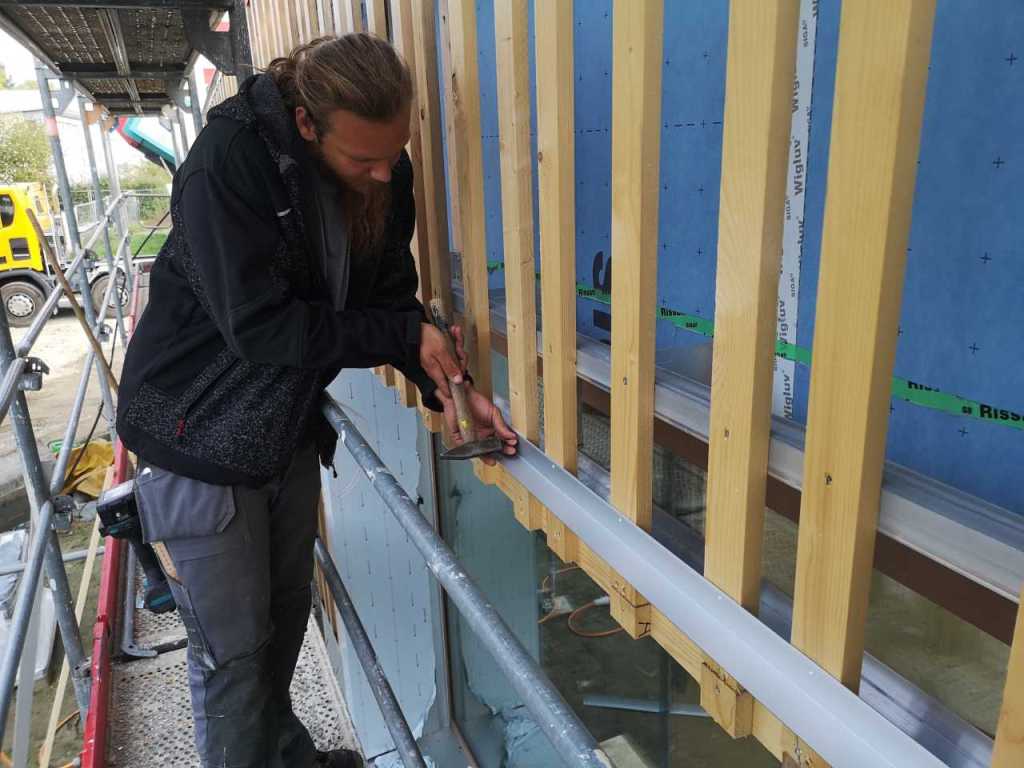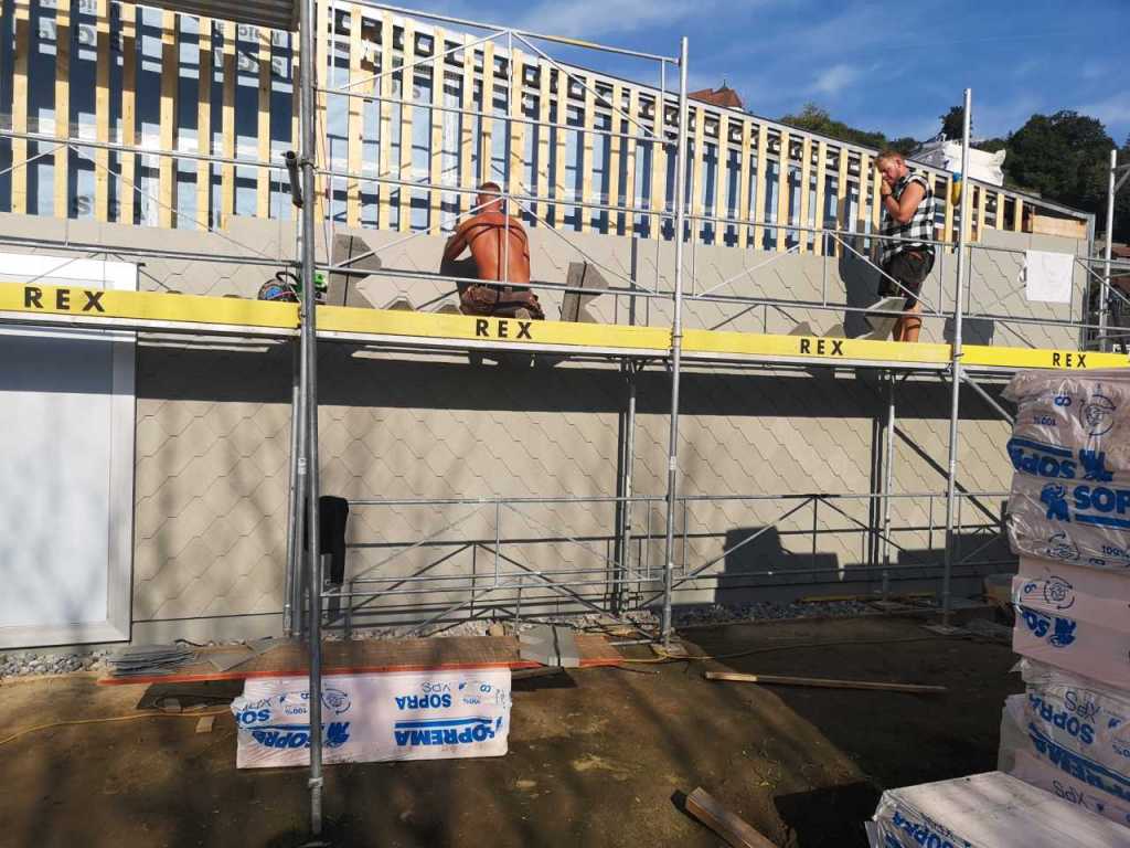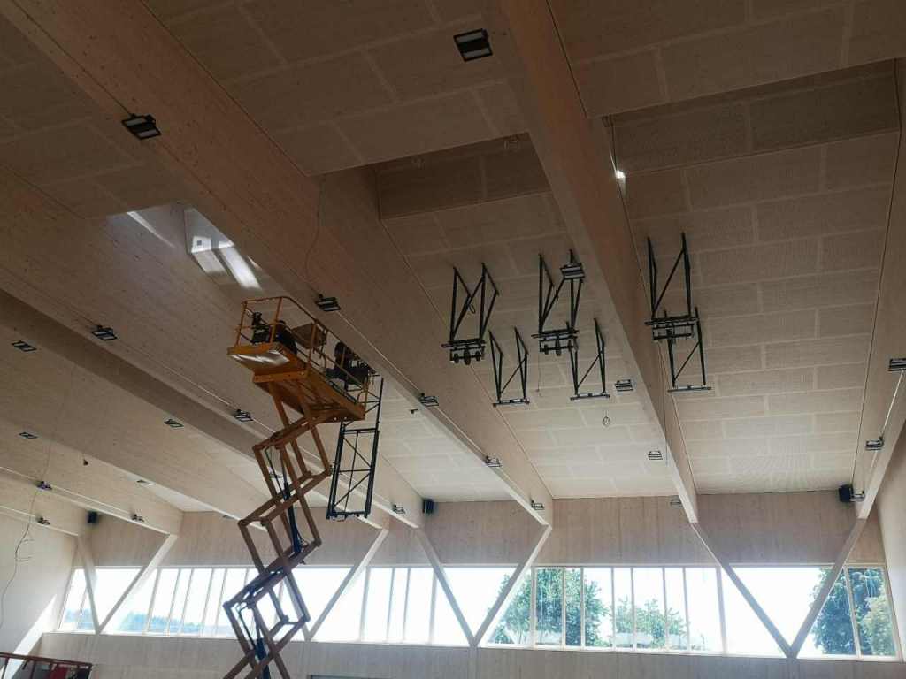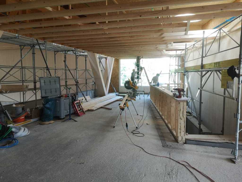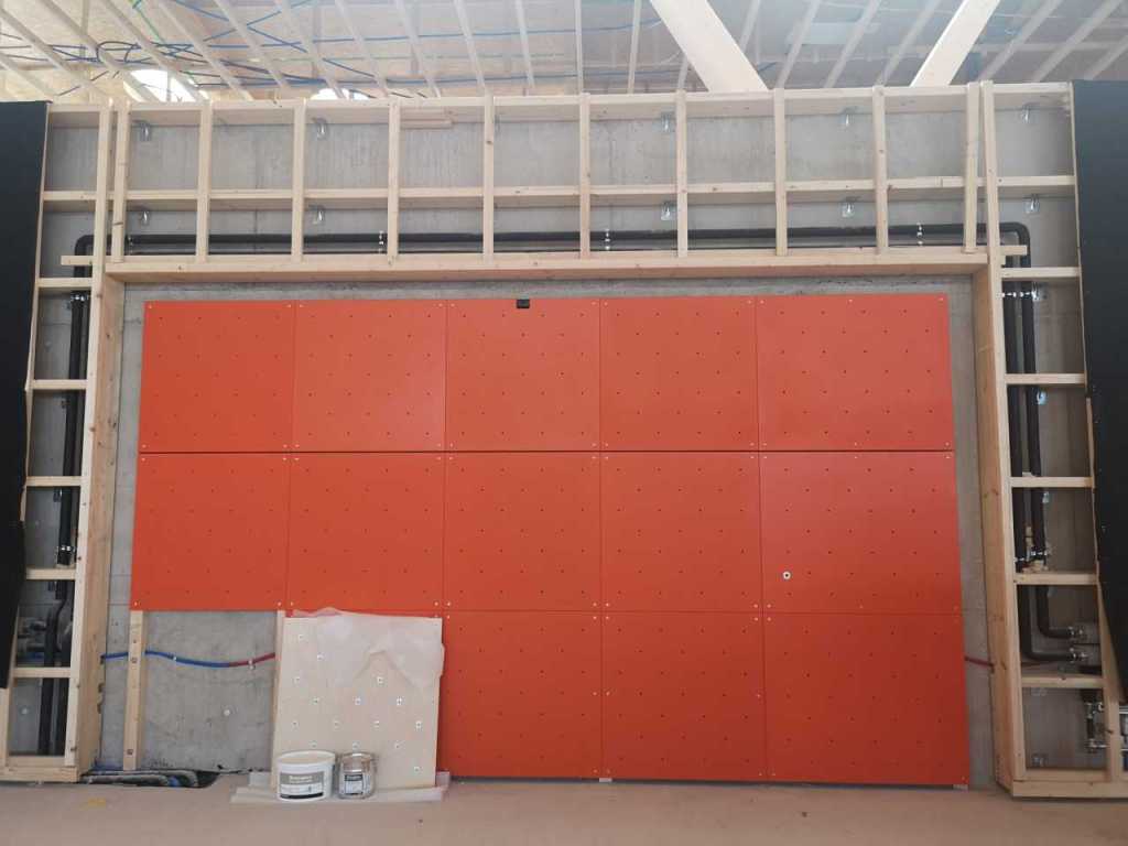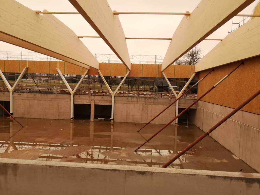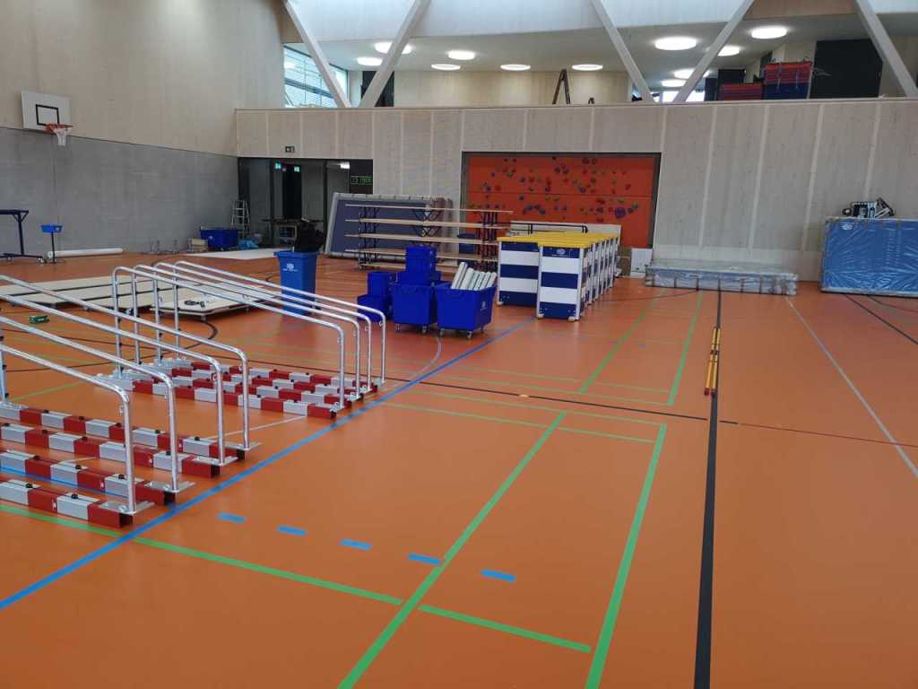 Flug durch die Sporthalle (14.10.22)Die Türe vor der Boulderwand ist montiert (07.10.22)Dachdeckerarbeiten am kleinen „Kamelbuckel“ (07.10.22)Ruhebänkli im Eingangsbereich (07.10.22)Erkennst du den Riss noch nach der Behandlung? (05.10.22)Die Bodenkosmetikerin an der Arbeit an Rissen (05.1022)Arbeiten an der Fassade der Eingangsfront (05.10.22)Durchreiche in die Teeküche (05.10.22)Das Material für den Geräteraum wurde angeliefert (03.10.22)Fuss- und Veloweg (03.10.22)Hallen aus Sicht der Geräteräume (30.09.22)Halle mit Blick auf die Tribüne und Dachkonstruktion (30.09.22)Technikraum (30.09.22)Garderobe (30.09.22)Gang zu den Garderoben mit runden Wandleuchten (30.09.22)Die Treppe von unten gesehen (30.09.22)Treppe zu den Garderoben (30.09.22)Stehtribüne (30.09.22)Foyer (30.09.22)In den letzten Tag fanden erste Vorabnahmen statt (30.09.22)Das Regenwetter der letzten Tag ist auch ein Test für die Regenwasserversickerungsanlage (29.09.22)Digitale Uhranlage, die gleichzeitig auch eine Stoppuhr ist in der Sporthalle (29.09.22)Bauleiterin Farida Krähenbühl mit einem deutschen Dachdeckergesellen in der Kluft (27.09.22)Die Hallen-Trennwand ist eingezogen (26.09.22)„Nest“ nennt sich dieser Typ Wasserabdeckung im Eingangsbereich (in Anlehnung an Herzog&De Meurons Nest-Stadion in Peking) 26.09.22Ring- und Taugeräte werden montiert (26.09.22)Dusche (26.09.22)Stand der Arbeiten beim zweiten Kamelbuckel (24.09.22)Dachfläche auf der Nordseite mit dem ersten Kamelbuckel (24.09.22)Der Bauspengler an der Arbeit bei der Fenstereinfassung (24.09.22)Blick in die Teeküche mit Durchreiche zum Foyer (24.09.22)Die Arbeiter und Maschinen der Moor AG im Einsatz auf dem Vorplatz (2309.22)Der Vorplatz wird goudroniert (23.09.22)Buebe-Toilette (2309.22)Auf der Vorderseite des Sichtschutzes in den Garderoben gibt es kleine Schränkli (23.09.22)Geräteraumeinrichtungen werden montiert (23.09.22)In den Garderoben wird der Sichtschutz montiert (22.09.22)Die Trennwand zwischen den beiden Hallen wird vor Ort genäht und montiert (22.09.22)Die Beleuchtung im Foyer mit den LED-Lichtbändern an den drei Oblichtern (22.09.22)Blick vom Duschraum zur Garderobe (20.09.22)Die Griffe der Boulderwand werden montiert (19.09.22)Im Vorfeld der Halle wird der Platz planiert (19.09.22)Die Tore zu den Geräteräumen werden montiert (19.09.22)Die WC haben nun auch Tür und Trennwände erhalten (19.09.22)WC sind montiert, wenn der Kredit reicht, gibt es noch Trennwände;-) (13.09.22)Die Bodenmarkierungen sind angebracht (12.09.22)Der PU-Boden in den Garderoben wird eingebracht (09.09.22) Foto Farida KrähenbühlDer Aussenbereich mit dem Veloweg nimmt Formen an (09.09.22)Die Teeküche im Foyer wird montiert (09.09.22)Auf dem Hallenboden werden die Markierungen vorbereitet (09.09.22)die Beleuchtung im Foyer ist montiert (07.09.22)eine weitere Schicht des Hallenbodens ist aufgetragen (07.09.22)Aussenansicht Stand 02.09.22eine weitere Schicht wird auf dem Hallenboden aufgetragen (02.09.22)Drei Oblichter beleuchten den Treppenabgang (02.09.22)Die Firma Moor ist am Vorbereiten des Zufahrtsweges für Velos und Fussgänger (01.09.22)Arbeiten an der Fassade (30.08.22)Die Brüstung der Stehtribüne ist mit einem dicken Brett abgedeckt (26.08.22)Die Sprossenwände werden montiert (26.08.22)Der Hallenboden wird gelegt (24.08.22)Die Eingangsfront wird sichtbar (23.08.22)Sicht von der Tribüne in die Halle. Stand 19.8.22Sicht von der Halle Richtung Tribüne. Stand 19.8.22Die Hebebühnen wurden aus dieser Öffnung im Geräteraum gehoben, dafür wurden bereits vier Barren hineingehievt. Die Öffnung wird wieder verschlossen. (19.08.22)Die Decke im Foyer wird durch die Zimmerleute montiert (15.08.22)Arbeiten an der Decke im Tribünenbereich (15.8.22)Auf dem Dach sind die ersten Eternitschindeln montiert (10.08.22)Die Eingangsfront und die Dachuntersicht ist bald fertig (10.08.22)Die Holzabdeckungen werden zum zweiten Mal lasiert (08.08.22)Hier werden die Griffe der Boulderwand montiert (08.08.22)Basketballanlage ist montiert (25.07.22)Die Ringanlage an der Hallendecke wird montiert (18.07.22)Blick von der Tribüne in die Halle – Fenster und Licht sind montiert (30.06.22)Dach und Fassade wären bereit für die Eternitschindeln (29.06.22)Im Foyer wird die Untersicht eingebaut (24.06.22)Im Eingangsbereich der Sporthalle (21.06.22)Wie ein Bilderrahmen wirkt das neue Fenstere gegen den Staufberg (15.06.22)Ein Türflügel wird montiert (15.06.22)Die ersten Fenster auf der Südseite sind montiert (14.06.22)Heizschlangen auf dem Hallenboden (08.06.22)Lukas Ziltener und sein Team montieren die PV-Anlage (03.06.22)Die Innenverkleidungen in der Halle sind fast fertig (30.05.22)Vorbereitungsarbeiten für die Montage der PV-Anlage (17.05.22)Die Hallendecke wird montiert (17.05.22)Dachlattung (17.05.22)Blick in die Halle Stand 12.05.22Blick von der Südseite durch die Halle auf die Tribüne (02.05.22)Aussensicht Stand 21.04.2022Die erste Dreischicht-Holzplatte der Innenwand ist montiert (21.04.22)Haustechnik: Montage Lüftung (21.04.22)Haustechnik: Wärmeverteilung (19.04.22)Haustechnik: Duschanlage (19.04.22)Arbeiten auf dem Dach (06.04.22)Der Blick von der Tribüne lässt die künftige Atmosphäre der Halle erahnen (30.03.22)Die Eingangspartie mit Vordach ist erkennbar (30.03.22)Das Dach ist eingedeckt und das Aufrichtebäumli steht (24.03.22)Das Dach wird eingedeckt (22.03.22)Alle acht Binder sind montiert (16.03.22)Die ersten fünf Binder überbrücken die Halle (15.03.22)Der erste Binder kommt geflogen… (14.03.22)Der Moment, wo der Frutiger-Kran die Kirche auf den Staufberg absetzt (13.03.22) Foto Thomas VollenweiderAm Montag, 14. März werden die Binder mit dem Pneukran auf die Y-Stützen montiert (11.03.22)Der Hilfskran steht bereit für die Montage der 30m langen Binder (11.03.22)Die Seitenwände sind aufgerichtet (11.03.22)Blick durch ein Fenster der Ostwand auf die Hostet (09.03.22)Die Y-Stützen für die grossen Binder werden montiert