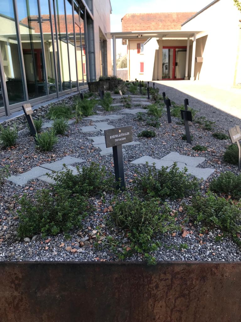 Öffentlich genug – aber dennoch ein bisschen geschützt im Innenhof zwischen Gemeindehaus und Zopfhuus, wird ein Kräuterbeet Menschen und Insekten erfreuen.