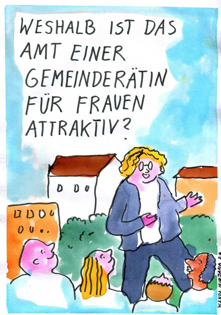 Die KI wurde auch mit der Frage gefüttert, weshalb denn ein Gemeinderatsamt für Frauen attraktiv ist? Wanda hat auch hierzu eine wunderbare Illustration gemacht.