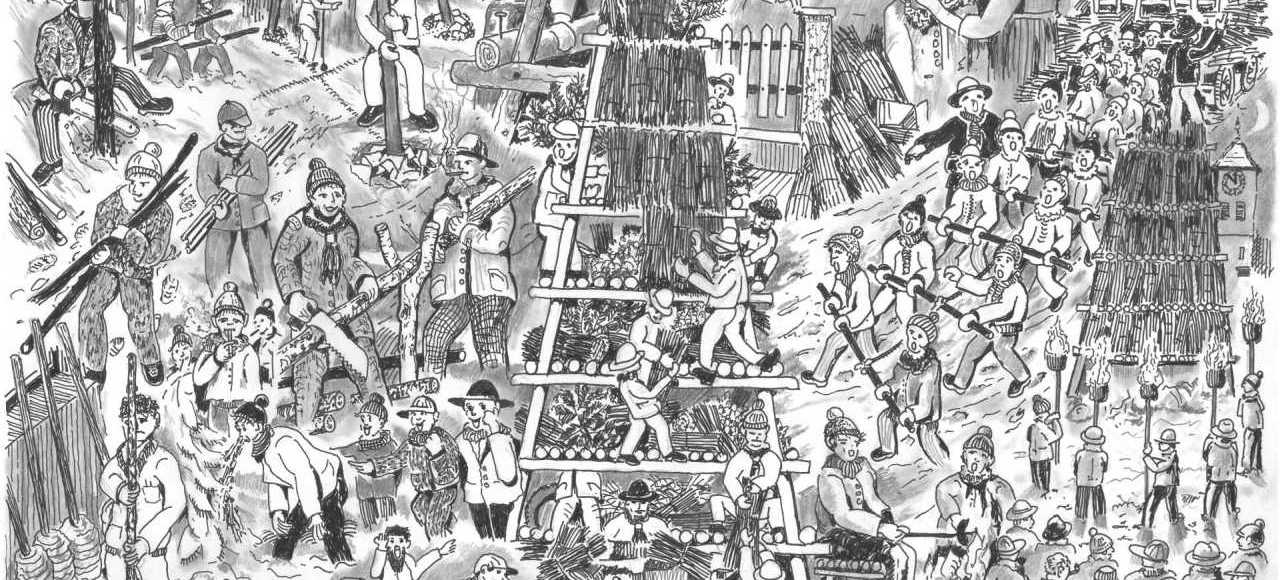 Max Furter hat ein wunderbares Wimmelbild gezeichnet, bei dem er zeigt, wie er die Silvesterwoche im Jahr 1944 als vierzehnjähriger Abschlussklässler erlebt hat. Viel Vergnügen beim Entdecken und Staunen!