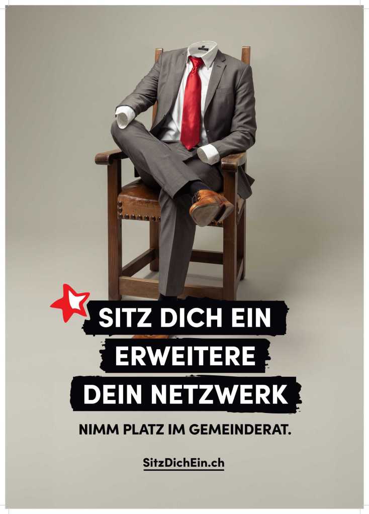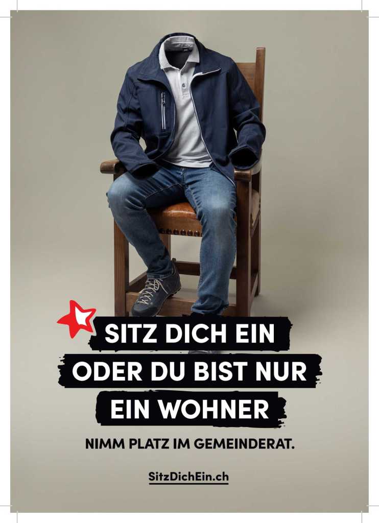 Im Wallis macht die Sensibilisierungskampagne „Sitz dich ein! – Nimm Platz im Gemeinderat.“ mit Augenzwinkern darauf aufmerksam, dass die Bevölkerung aktiv wird und in Gemeinderäten mitarbeitet. Die nachfolgenden Bilder stammen aus dieser Kampagne und wir dürfen diese auch für Staufen verwenden. Und klar hofft der Gemeinderat, dass die Bilder motivieren, am Austauschabend mitzumachen.
