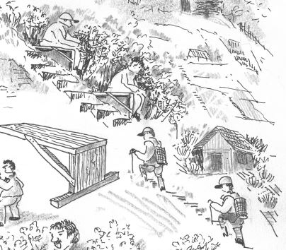Max Furter (Jahrgang 1930) hat ein weiteres Wimmelbild zu seinen Jugenderinnerungen gemacht. Und zwar zu der Zeit als das Pflücken von Trübeli für die Hero die Sommerferien vieler Staufner Kinder und Erwachsener prägten. (Bereits zu einem früheren Zeitpunkt hat er ein Wimmelbild zur Silvesterwoche gezeichnet.)