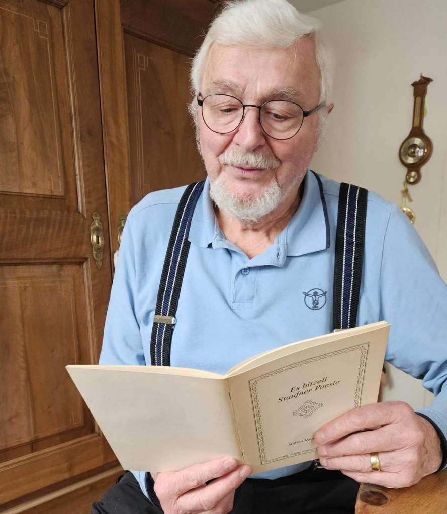 Ruedi Sandmeier liest zwei Gedichte: Strauwälle-Stuude und zum Dorffest 1959.