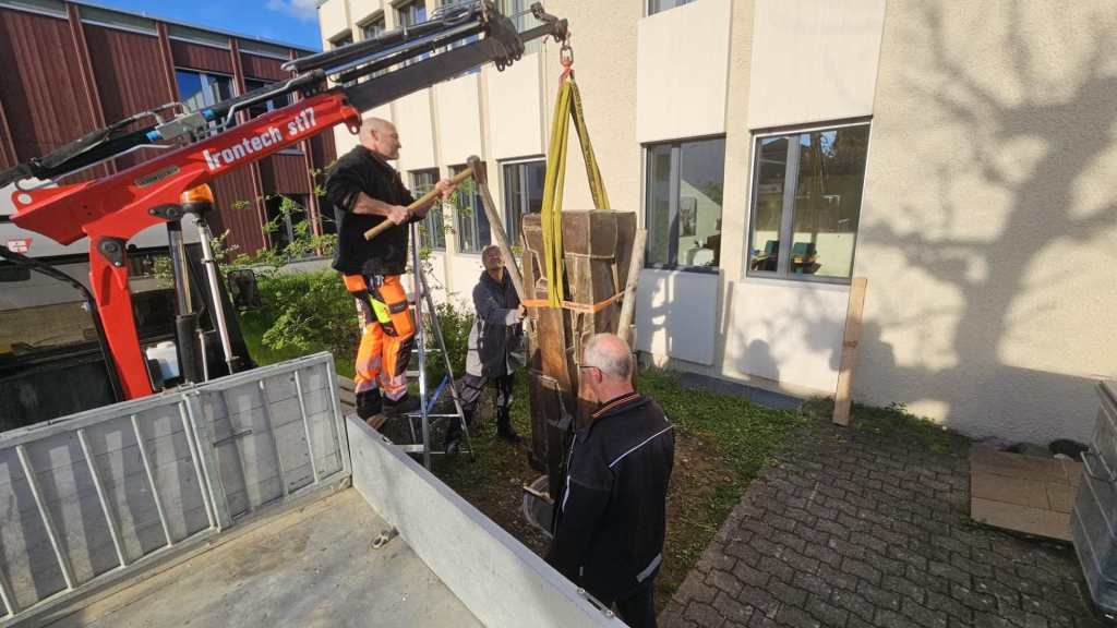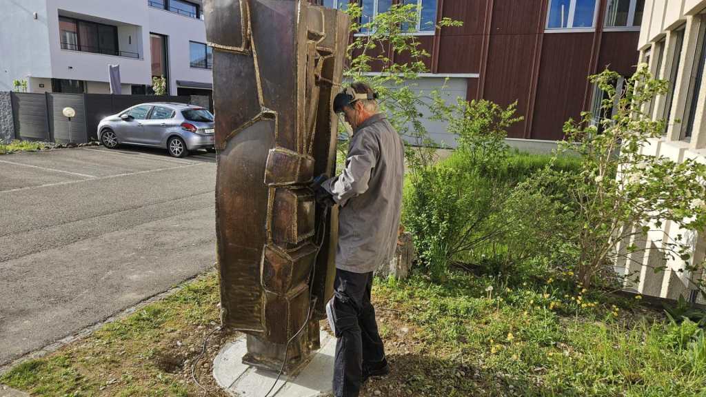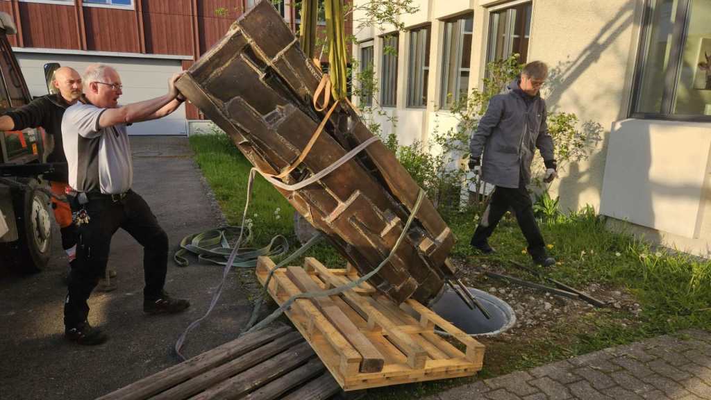 Die aus Bronzestücken zusammengeschweisste Säule wurde während den Frühlingsferien vom Metallgestalter und Goldschmied Franz Arnold aus Schafisheim sorgfältig demontiert. Er hat die 180kg schwere Skulptur in sein Atelier gezügelt und diese dort für ihren neuen Auftritt vorbereitet.