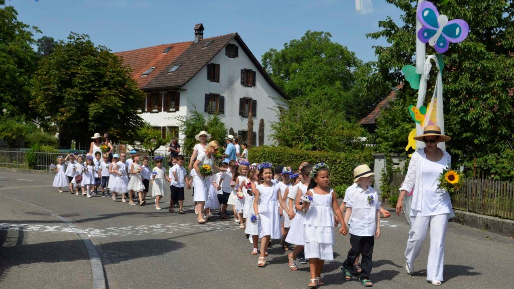 Pünktlich zum kommenden Jugendfest präsentiert sich die neue Dorfbeflaggung, welche Schwung, Dynamik und Verbundenheit symbolisiert.