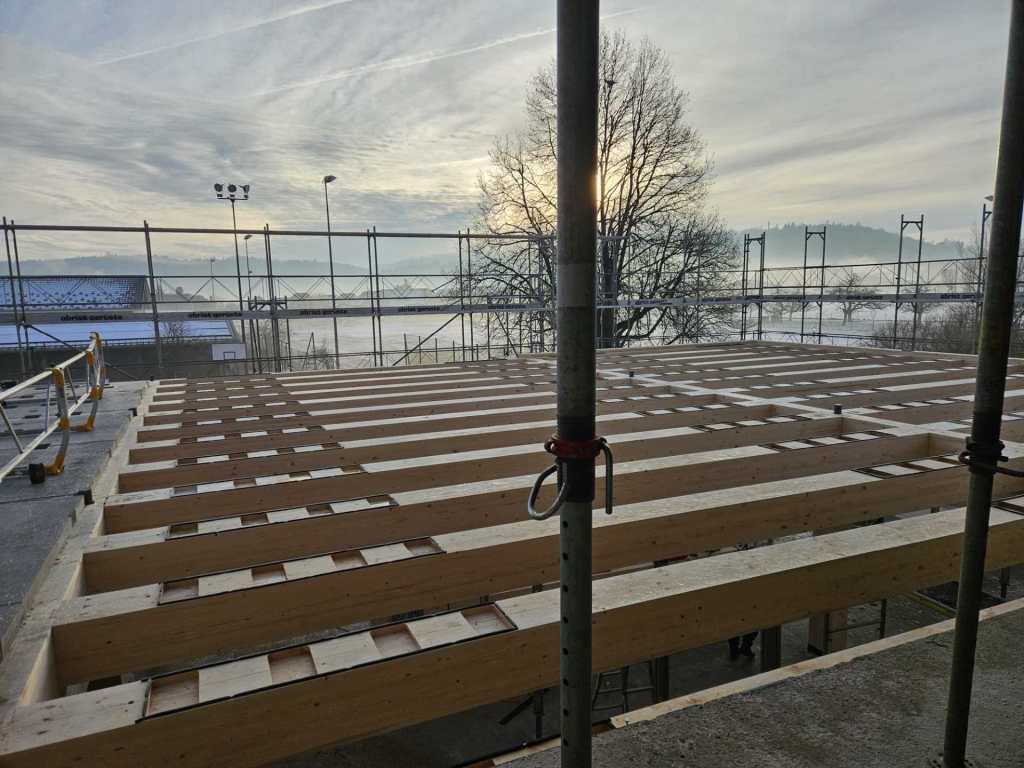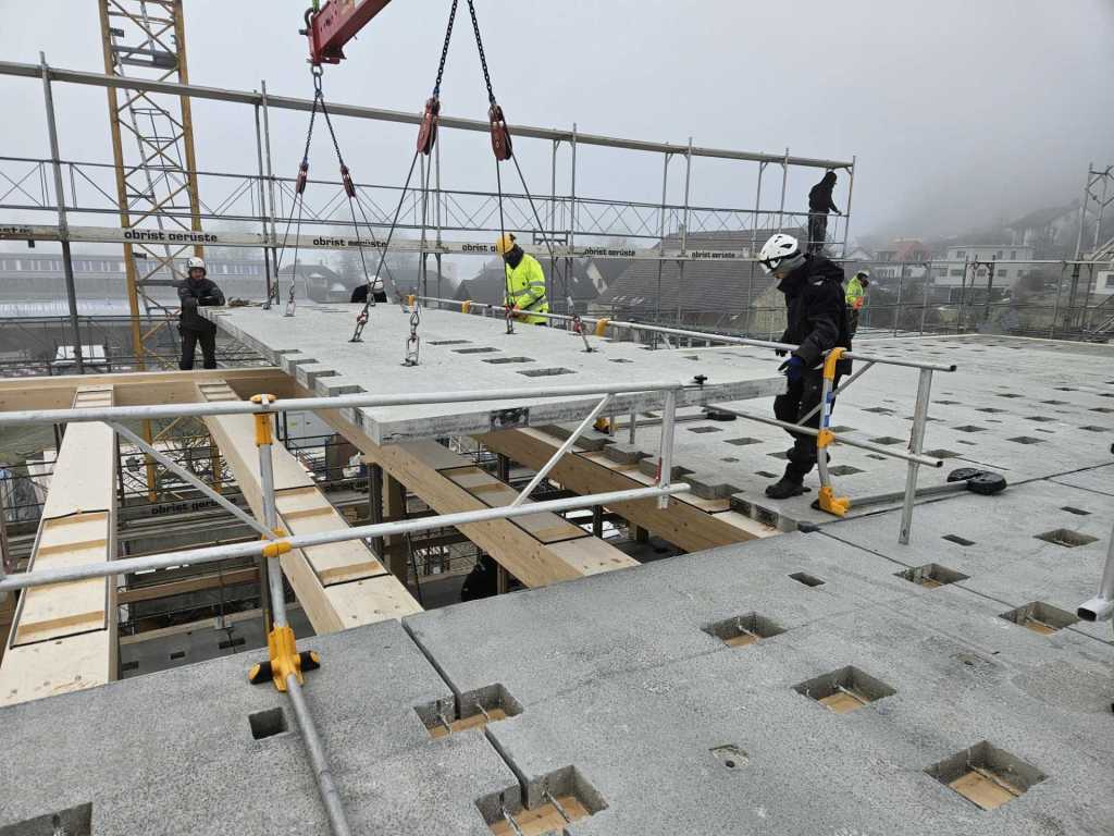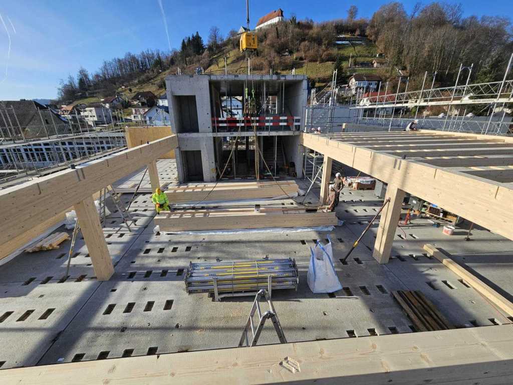 Situation 13.1.26 Balkenlage und Betonverbundplatten (auf Fotos klicken zum Vergrössern)