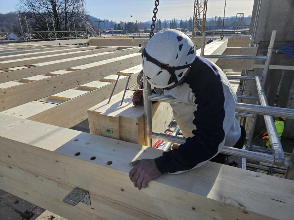 Am 15. Januar wird bereits die Balkenlage der zweiten Etage gesetzt.